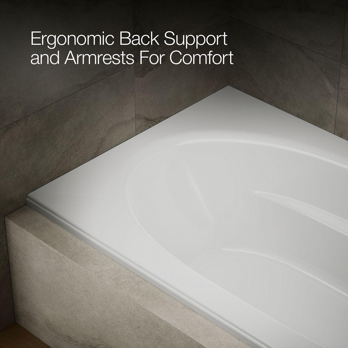 - Integral lumbar support and armrests offer extra comfort while bathing.