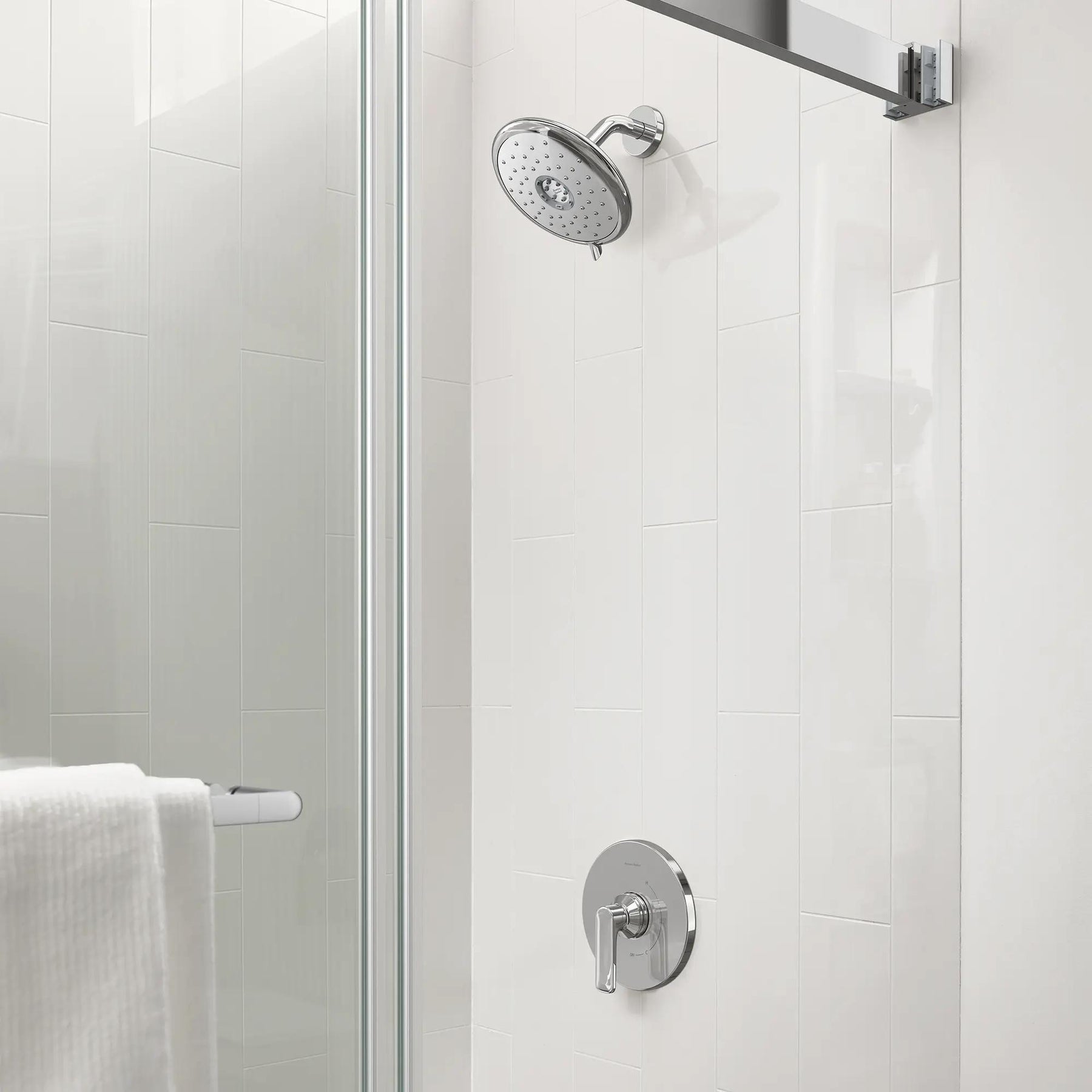 The Aspirations Tub and Shower Trim from American Standard is a contemporary style designed to complement the entire Aspirations bathroom collection. It features a versatile 4-function shower head with lever to easily alternate between sprays, and technology to ensure consistent water temperature for the duration of your shower. Includes shower head, metal lever handle with one-piece cartridge, diverter tub spout. Requires Flash® Shower Rough-in Valve, sold separately.