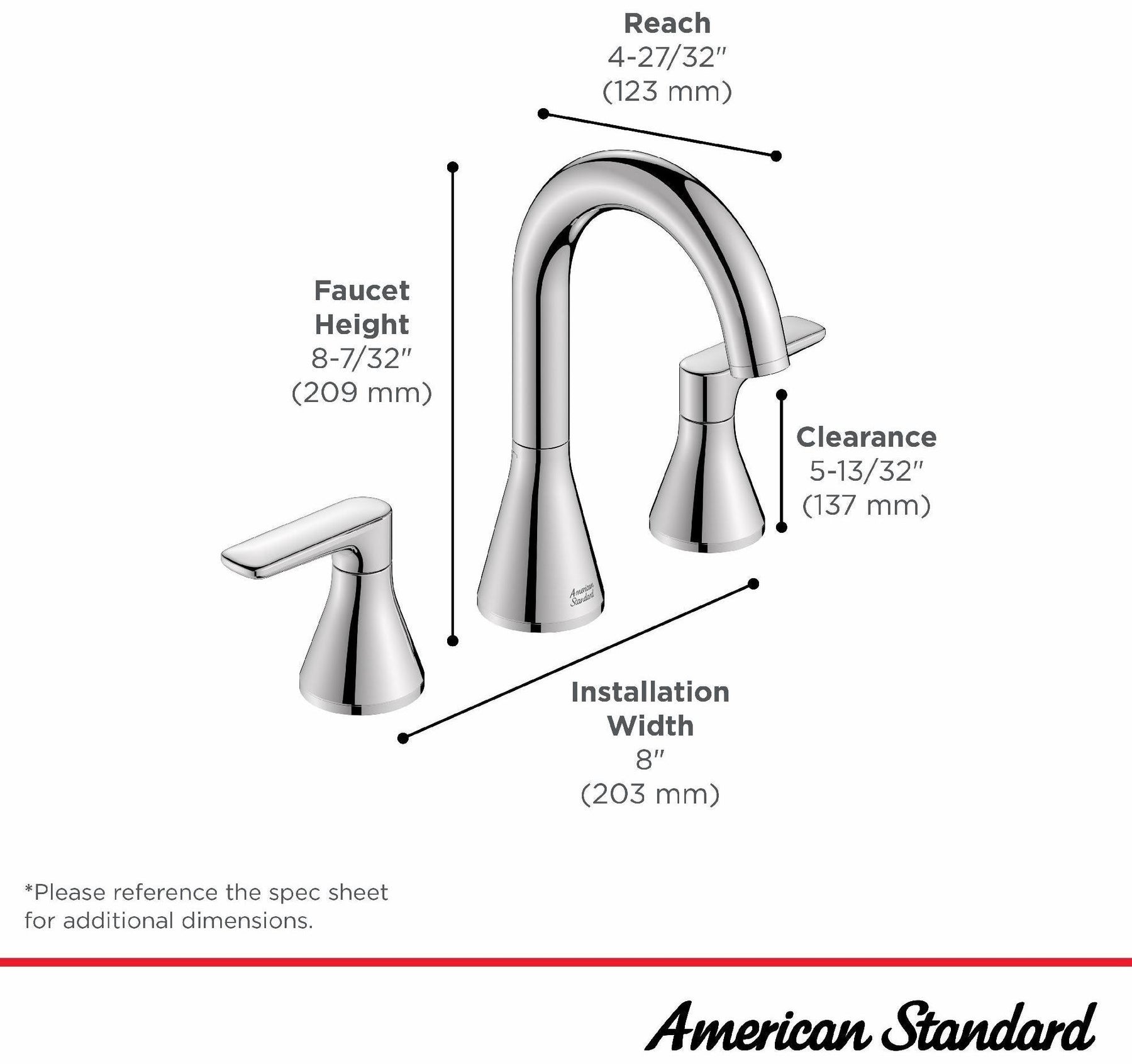 The Aspirations 8" Widespread Bathroom Faucet from American Standard has a high-arc, swivel spout for added versatility at the bathroom sink. This distinctive 3-hole bathroom faucet, with swivel spout, allows for complete clearance and access to the sink. Beautifully proportioned, this minimalist 3-hole faucet is the perfect choice for the busiest bathroom and its contemporary design complements the entire Aspirations collection.