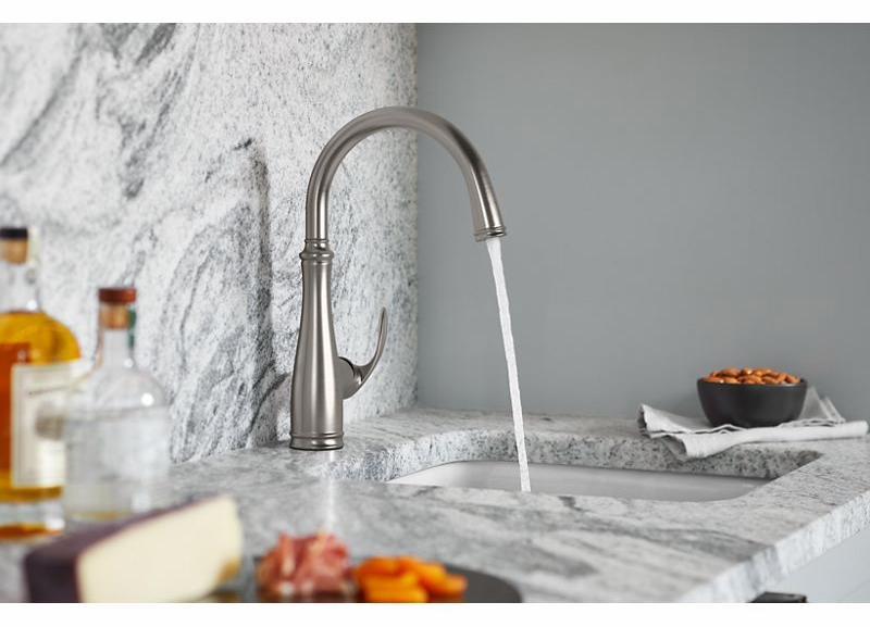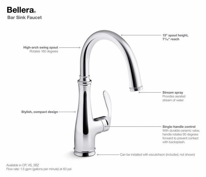 With an elegant, versatile design, this Bellera faucet offers exceptional functionality for a bar sink or secondary kitchen sink. The high-arch spout swivels 180 degrees, giving you wide coverage for food and drink prep and simplifying cleanup.