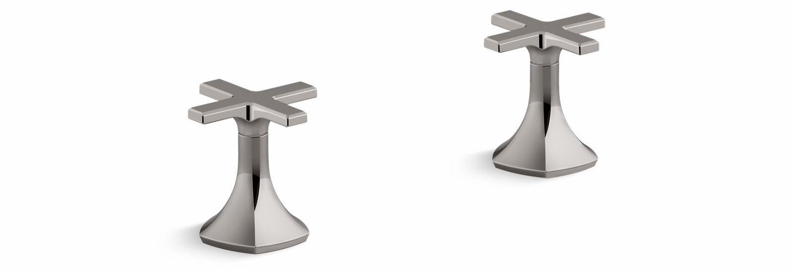 Unapologetically luxurious and truly unforgettable, Occasion bathroom faucets and accessories draw inspiration from 1960s Hollywood glamour and extravagance. Fashioned after the era’s sleek dress lines and bold car designs, the Occasion collection reflects graceful elegance, blending classic midcentury and modern design. Customize your bath with the collection’s distinctive pentagonal accents, faceted bases, flowing lines, and delicate edges. Choose a spout, handles, and finish to build your own signature design. Pair these elegant, minimalist cross handles with valves with your choice of Occasion sink faucet spout for a look as fashionable as it is functional.