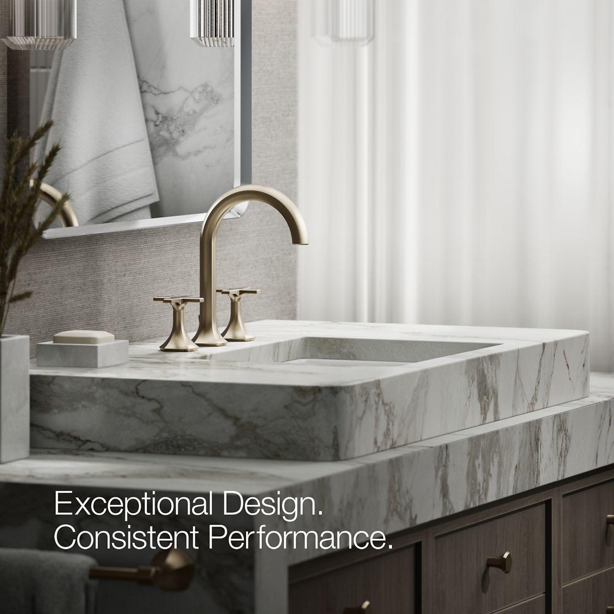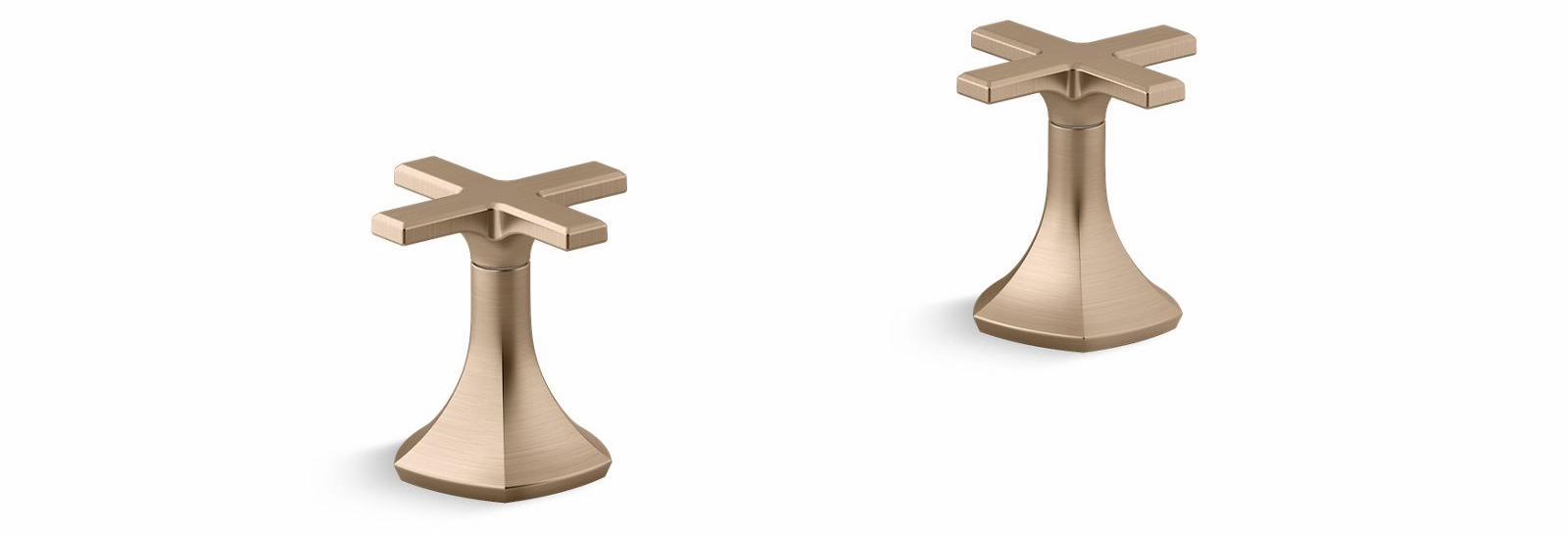 Unapologetically luxurious and truly unforgettable, Occasion bathroom faucets and accessories draw inspiration from 1960s Hollywood glamour and extravagance. Fashioned after the era’s sleek dress lines and bold car designs, the Occasion collection reflects graceful elegance, blending classic midcentury and modern design. Customize your bath with the collection’s distinctive pentagonal accents, faceted bases, flowing lines, and delicate edges. Choose a spout, handles, and finish to build your own signature design. Pair these elegant, minimalist cross handles with valves with your choice of Occasion sink faucet spout for a look as fashionable as it is functional.