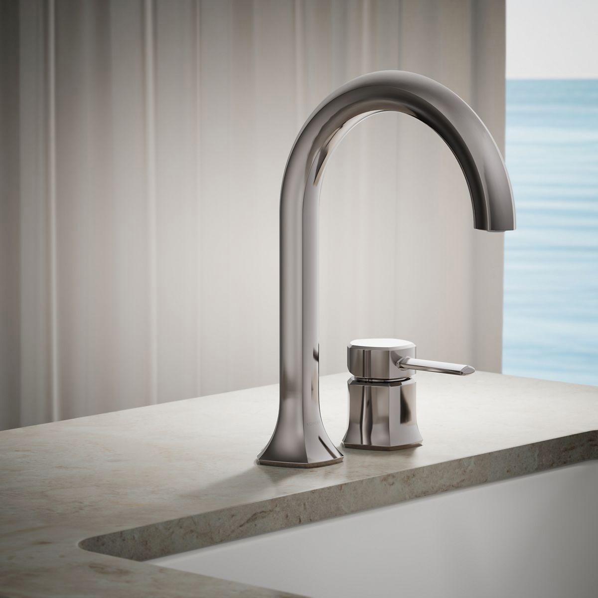Unapologetically luxurious and truly unforgettable, Occasion bathroom faucets and accessories draw inspiration from 1960s Hollywood glamour and extravagance. Fashioned after the era’s sleek dress lines and bold car designs, the Occasion collection reflects graceful elegance, blending classic midcentury and modern design. Customize your bath with the collection’s distinctive pentagonal accents, faceted bases, flowing lines, and delicate edges. Choose a spout, handles, and finish to build your own signature design. Pair this elegant, minimalist single-control bath faucet handle with your Occasion deck-mount bath faucet spout for a look as fashionable as it is functional.