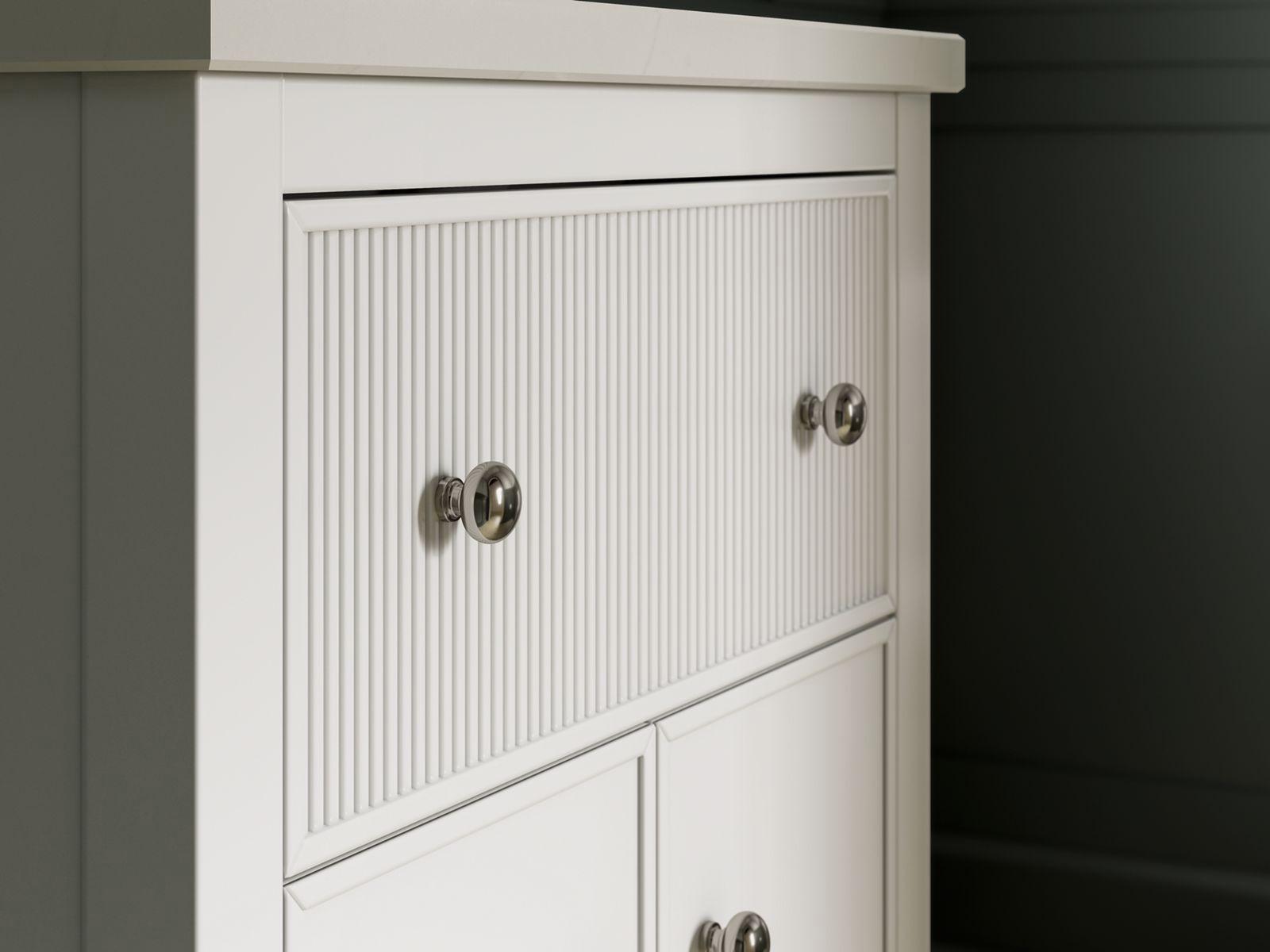 Drawing inspiration from the archives, the Malin vanity collection from Kohler x Studio McGee combines classic and modern influences in a timeless expression for the home. With its distinctive square legs and clean lines, the Malin collection represents an undeniable Shaker sensibility. These delicate classic mushroom knobs add a captivating combination when paired with this uniquely versatile and timeless design.