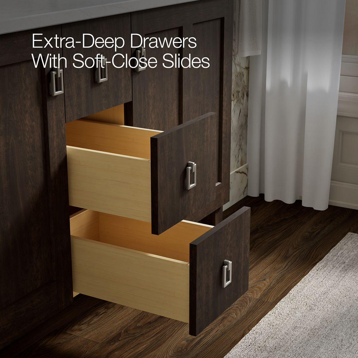 - Full-extension 18 (457 mm) depth drawers with soft-close undermount slides for smooth opening