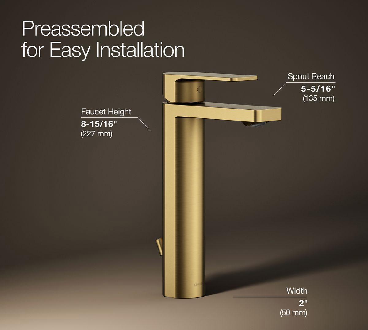 Parallel Tall Single Hole Bathroom Faucet 0.5 GPM - Vibrant Brushed Moderne Brass 23475-4N-2MB Kohler