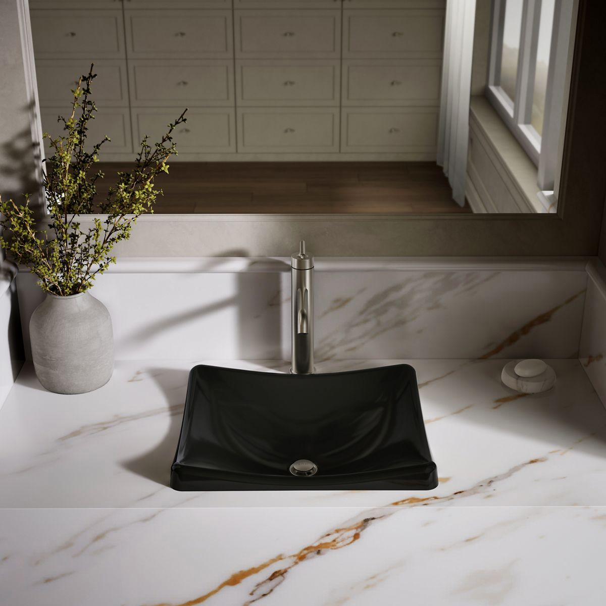 Delicately sloping lines and a squared-off silhouette give the DemiLav Wading Pool sink a distinctive, contemporary style that sets it apart from traditional designs. The shallow basin depth creates a sleek focal point in your bathroom.