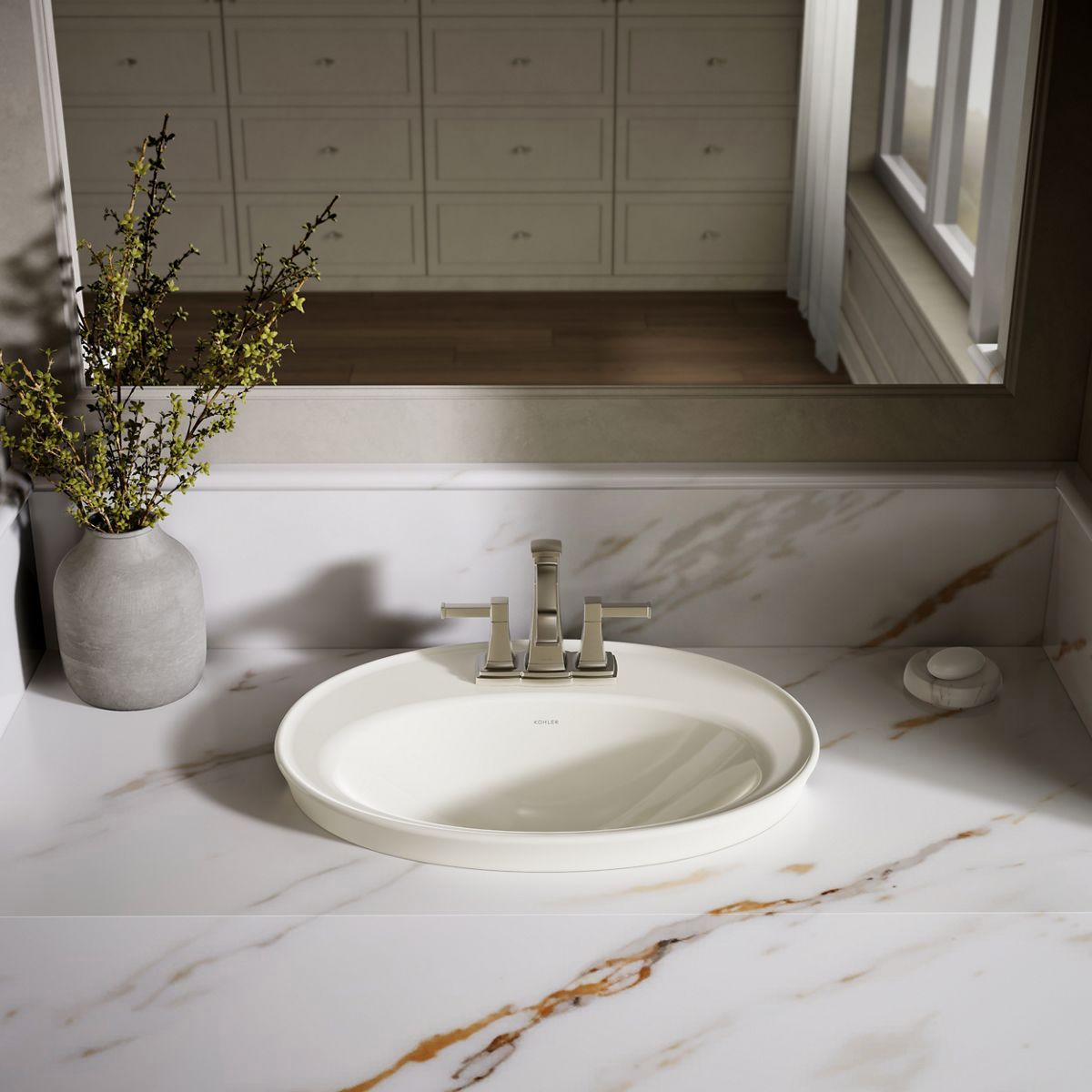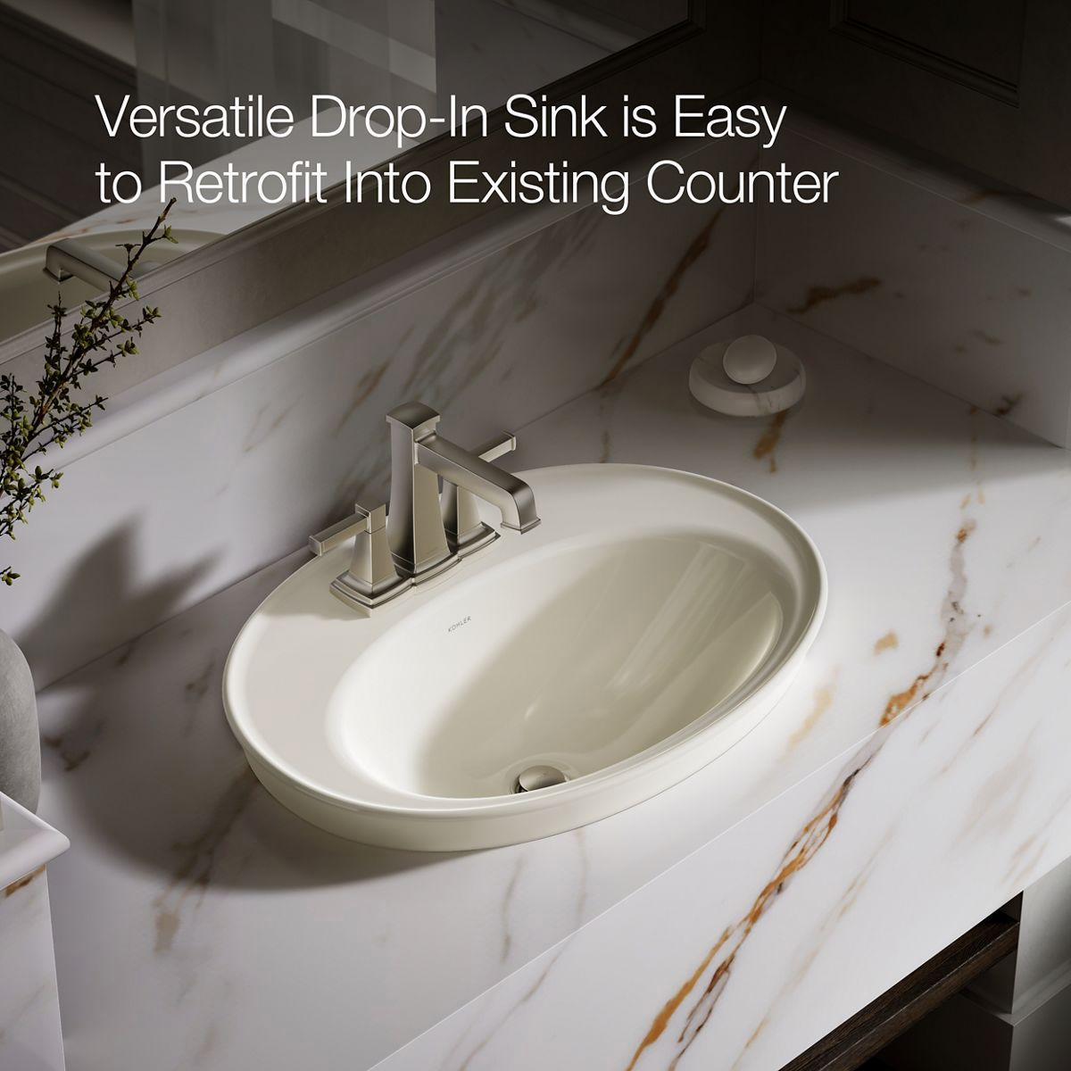 With classic curves and a hint of contemporary flair, the Serif drop-in sink offers a unique style that fits a variety of bathroom decors. Combine this basin with other products in the Serif collection to carry the sophisticated look throughout your bathroom.