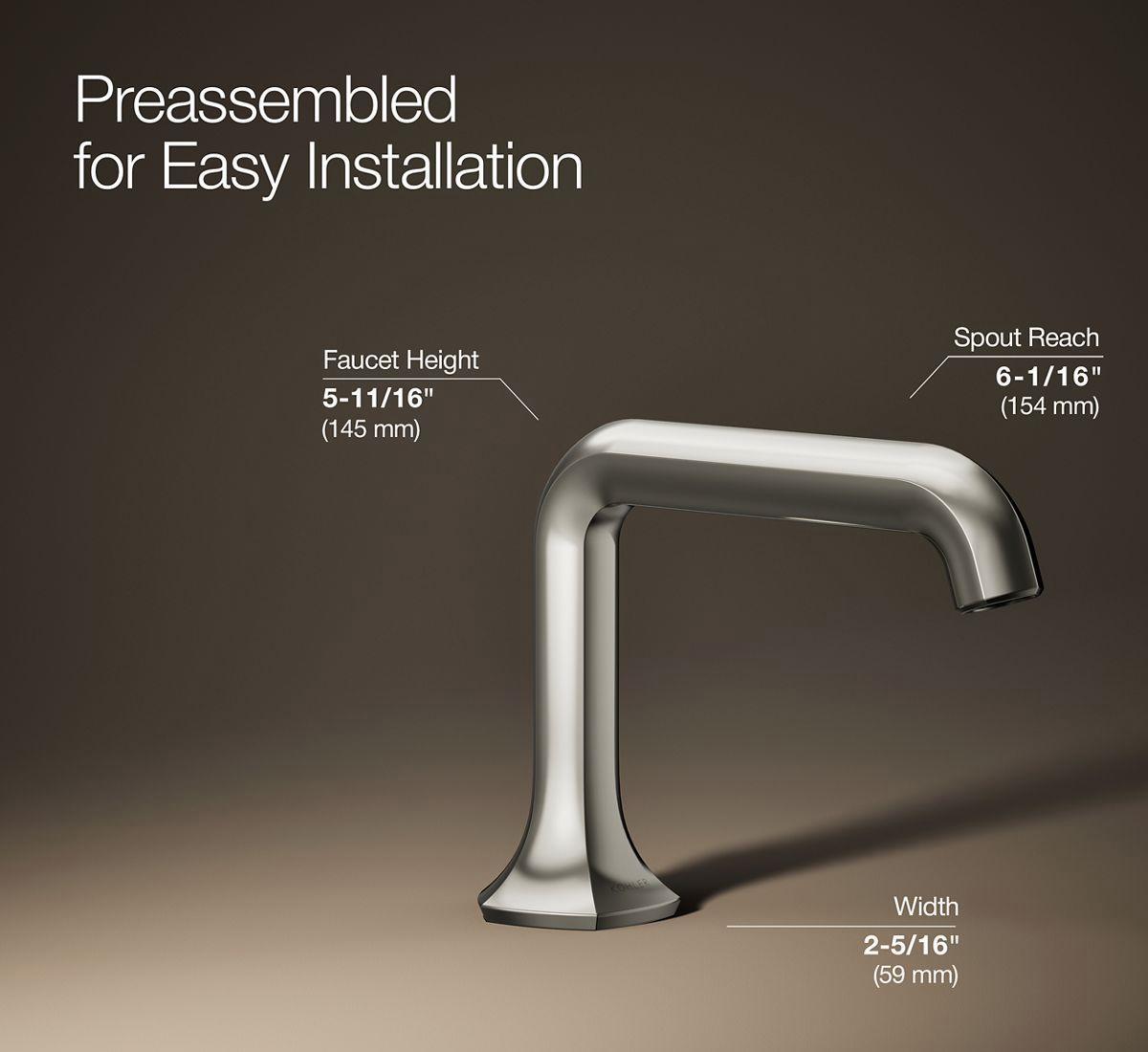 Unapologetically luxurious and truly unforgettable, Occasion bathroom faucets and accessories draw inspiration from 1960s Hollywood glamour and extravagance. Fashioned after the era’s sleek dress lines and bold car designs, the Occasion collection reflects graceful elegance, blending classic midcentury and modern design. Customize your bath with the collection’s distinctive pentagonal accents, faceted bases, flowing lines, and delicate edges. Choose a spout, handles, and finish to build your own signature design. Minimalist with soft square angles, the Occasion bathroom sink faucet spout with Straight design pairs with your choice of Occasion sink faucet handles for a look as fashionable as it is functional.