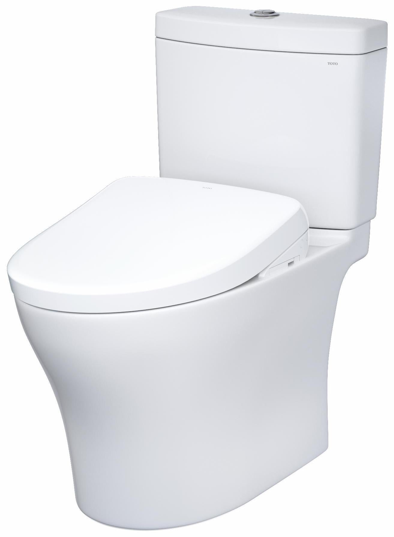 The TOTO WASHLET+® Aquia IV Two-Piece Elongated Dual Flush 1.28 and 0.9 GPF Toilet and Contemporary WASHLET® S7 Bidet Seat is designed to conceal the WASHLET® power cord and water supply hose for a seamless installation. The WASHLET® S7 features TOTO's technologically advanced EWATER+® system that mists the wand and toilet bowl, reducing the need for harsh cleaning chemicals. PREMIST® wets the surface of the toilet bowl, aiding in the removal of waste and resulting in a better clean. The TOTO WASHLET® S7 is operated by a luxury style illuminated touch button remote with 4-user memory storage to save preferred settings. The WASHLET® features 5 spray settings, heated seat, and instantaneous water heating. The newly redesigned lid style resides flush with the toilet bowl, providing a streamlined look and giving the impression of an integrated system. This minimalistic display provides a more subdued appearance to your WASHLET®. Skirted design toilets minimize the need to reach behind the bowl to clean in between the nooks and crannies of the exterior trapway. The Universal Height design allows for a more comfortable seat position across a wide range of users. The Aquia IV features TOTO’s DYNAMAX TORNADO FLUSH, utilizing a 360 degree cleaning power to reach every part of the bowl. This version of the Aquia IV includes CEFIONTECT®, a layer of ceramic glaze that minimizes waste from sticking to ceramic surfaces. CEFIONTECT®, EWATER+®, and DYNAMAX TORNADO FLUSH create a synergy that optimizes flush performance to reduce the frequency of toilet cleanings, minimizing the usage of water, harsh chemicals, and time required for cleaning. The enhanced design of the Aquia IV inner bowl reduces water flow resistance and turbulence, resulting in a quieter flush. The chrome center-mounted push button that sits atop the tank allows you to proactively conserve water by choosing between a 0.9 GPF rinse or 1.28 GPF for tougher jobs. The Aquia IV comes ready for install into a 12" rough-in, but may be adapted for a 10" or 14" rough-in with the purchase of a separately sold adapter. Additional items needed for installation must be purchased separately: wax ring, toilet mounting bolts, and toilet water supply lines.
