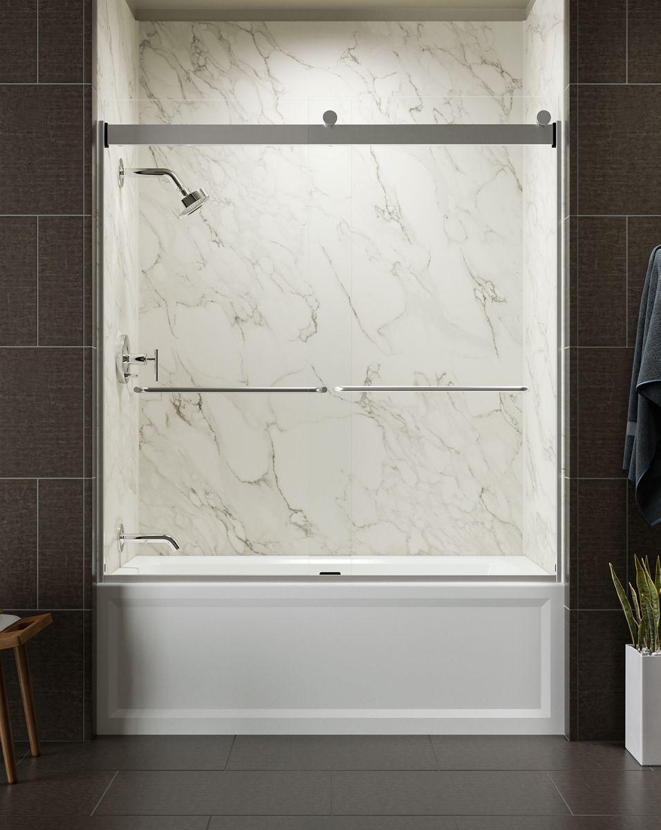Bringing new technology and sleek style to the contemporary bath, Levity bath doors feature an innovative bypass system and roller design that provide an amazingly smooth, quiet sliding action for a difference you can feel. Levity's unique design, including fully bypassable glass panels, makes installation easier than ever and allows for adjustability while the door is hanging. Gently curved towel bars accentuate the contemporary style of Levity bath doors.