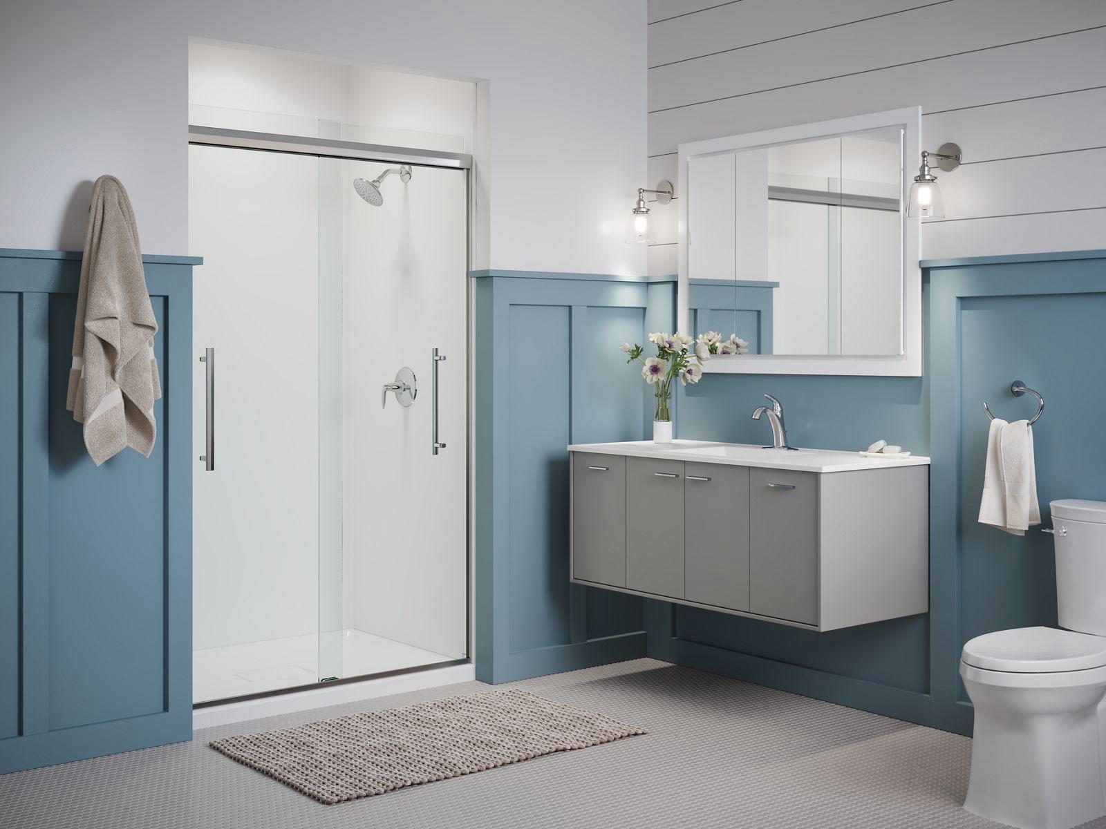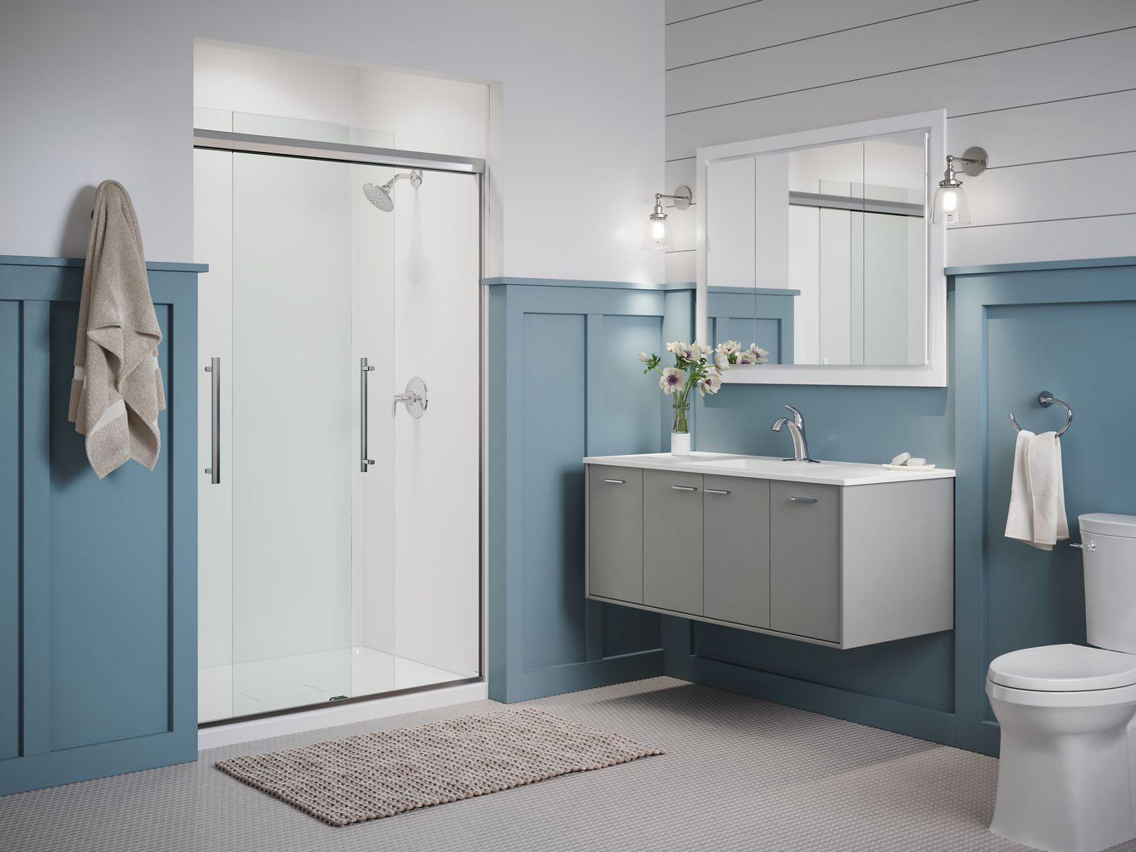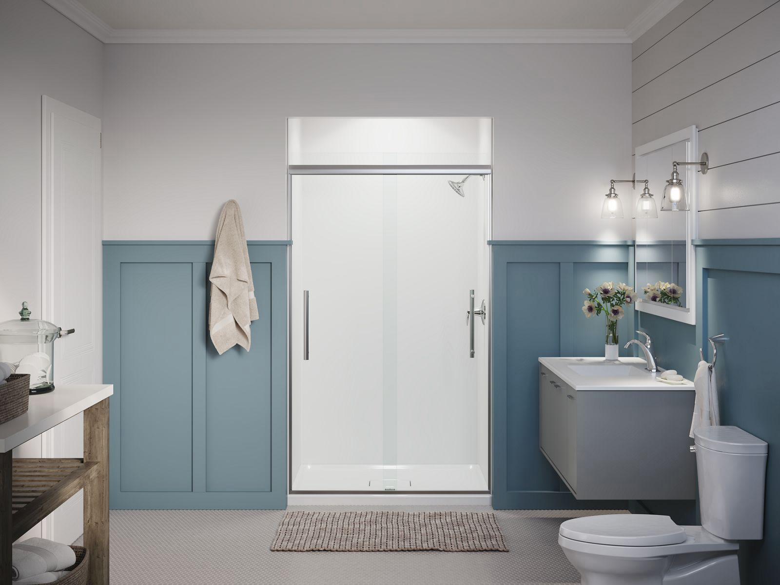 With modern style and crisp, clean design lines, Pleat brings new technology to the contemporary bath. Pleat shower doors feature a double header which conceals the wheels and door tracking system, while allowing the glass panels to rise above the header, giving the 79-1/16” tall door a sleek, lofted and airy look. The Stays Closed feature inside the header keeps the door firmly closed, providing excellent water containment, and fully bypassable glass panels make installation easier than ever and allow for adjustability while the door is hanging. Pleat’s 5/16 thick glass offers a luxurious, heavier feel.