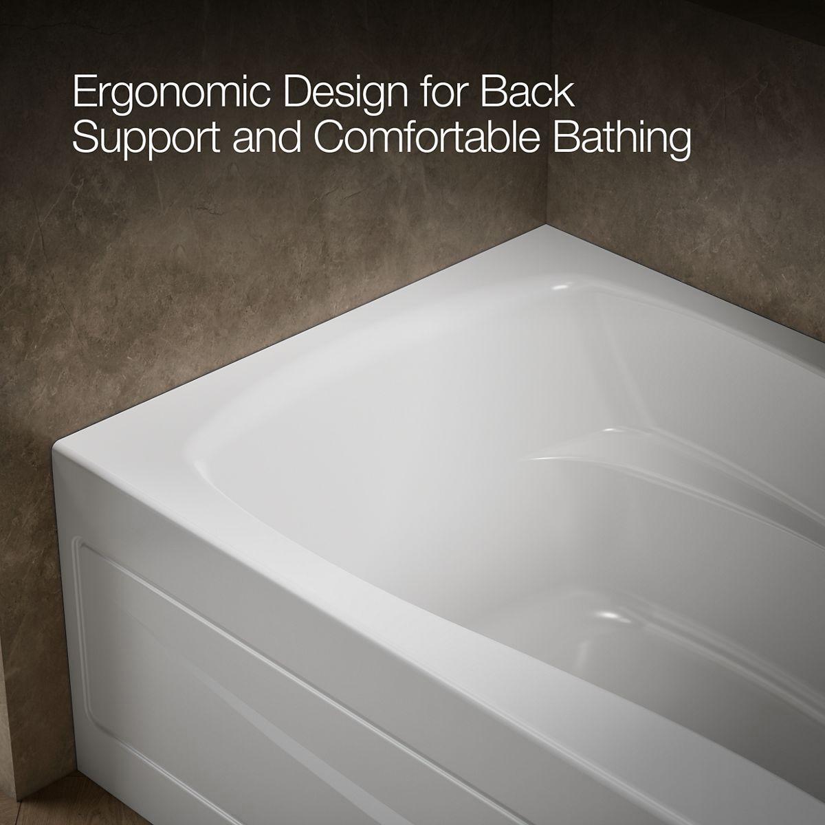 The body-contoured design of the Mariposa, combined with its quick and easy installation, makes this 5' bath a builder favorite. Constructed of high-quality acrylic, this model features a right-hand drain and includes an integral flange to further simplify installation.