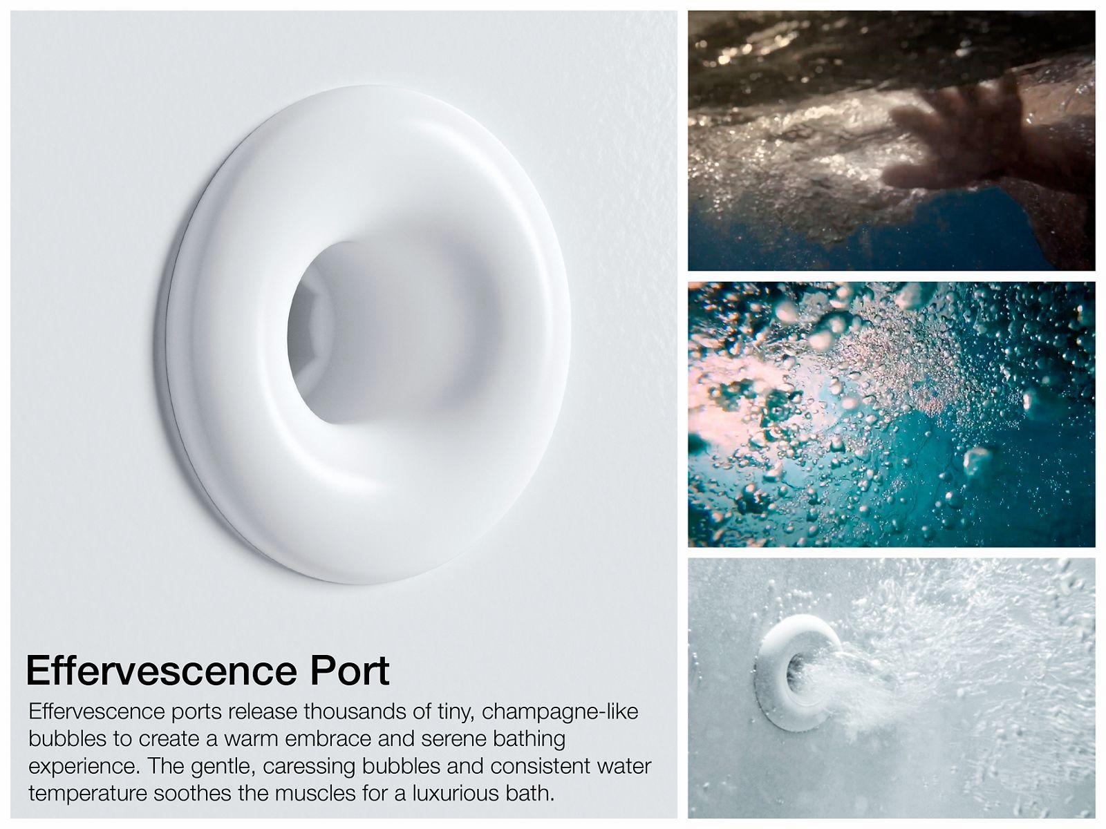 With rich detailing reminiscent of crown molding, Memoirs brings classic architectural style to your bathroom. This Spa Package bath features effervescence ports that release thousands of tiny champagne-like bubbles for a unique, revitalizing sensation, while whirlpool jets massage tired muscles. Chromatherapy lights bathe you in the soothing glow of colors for enhanced mind-body relaxation.