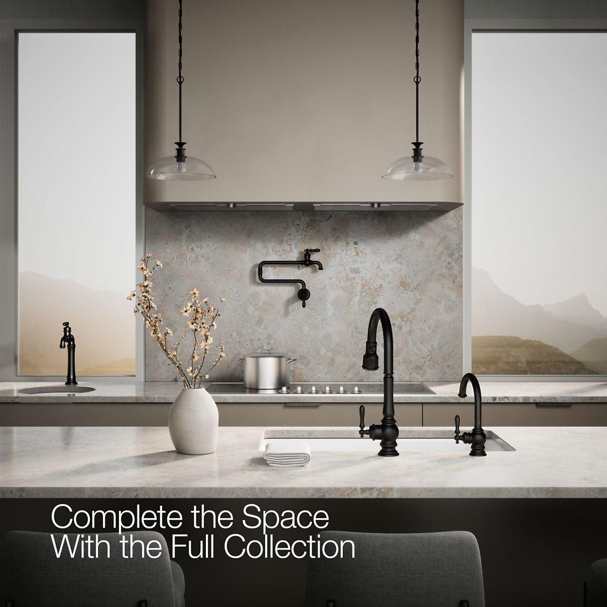 With a traditional design and color finishes uniquely harmonized to the Artifacts kitchen faucet collection, this Artifactsbeverage faucet adds convenience and style to your kitchen. A swing spout makes filling large pitchers a breeze, while a ceramic valve gives you precise control over water flow to prevent splashing. Pair this Artifactsfaucet with a bar/prep sink and an undercounter water filter or chiller for easy access to pure, refreshing drinking water.