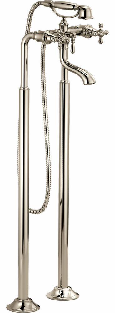 The Tresa Bath Collection features traditional yet timeless styling that bridges the past and present. The two-handle freestanding tub filler can be configured for wall mount, deck mount or floor mount installations. For floor mount installations only, a rough (sold separately) is required.