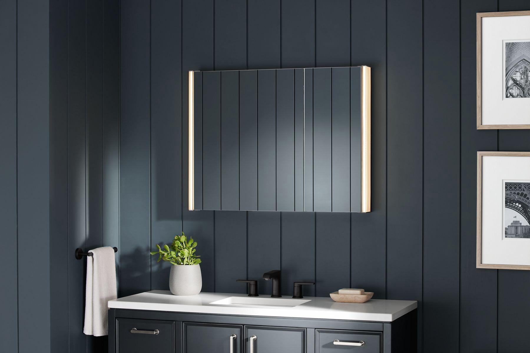 - Side-integrated LED lighting provides optimally bright bathroom vanity lighting for grooming tasks.
