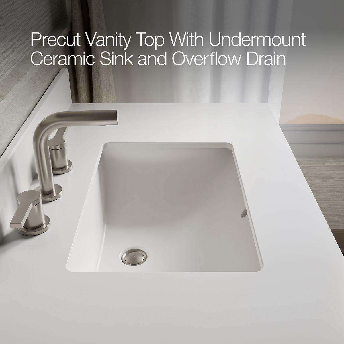 • Vanity top has 8" (203 mm) widespread faucet holes; requires deck-mount faucet (sold separately)