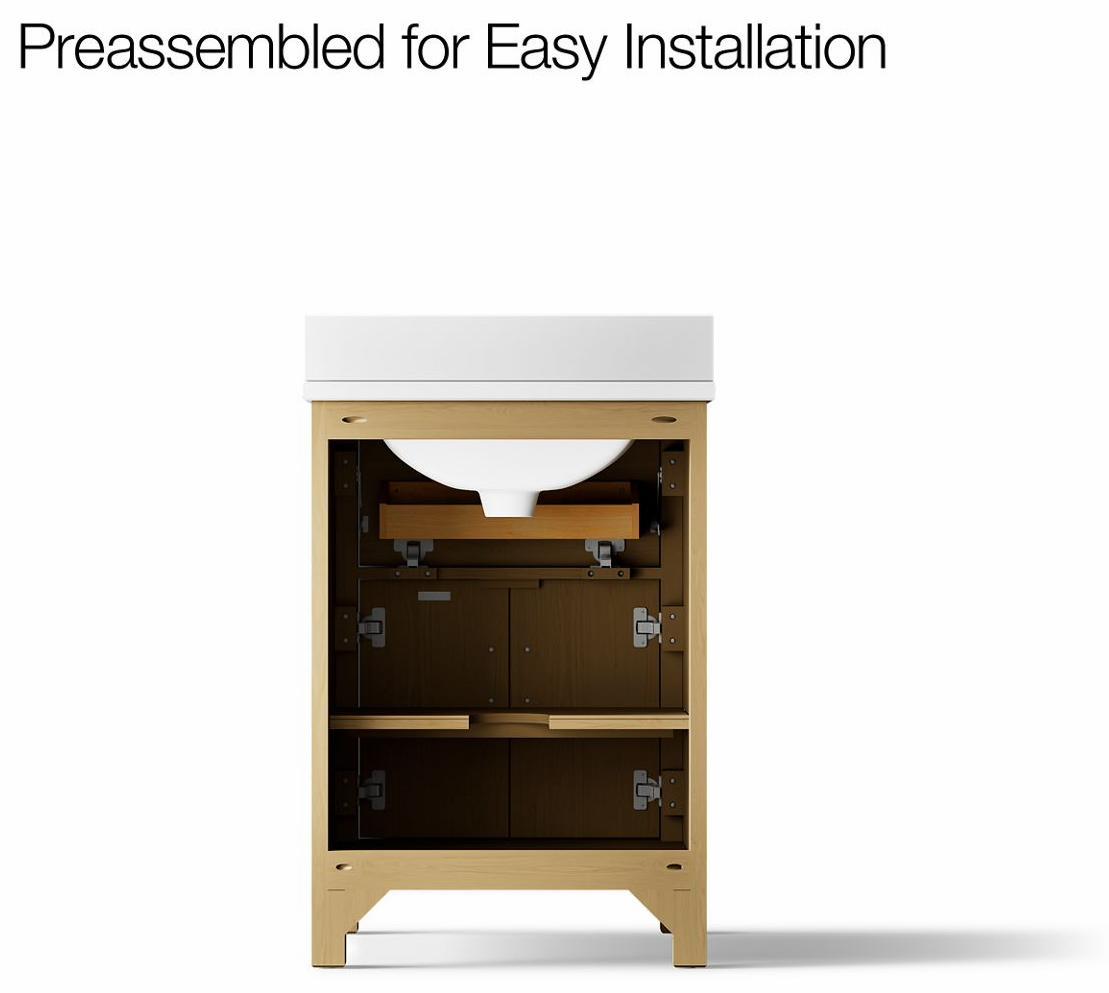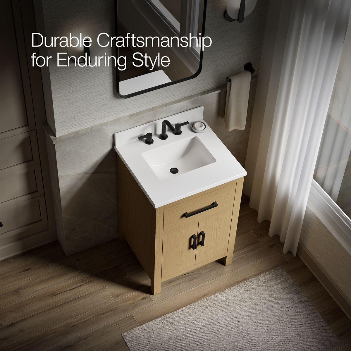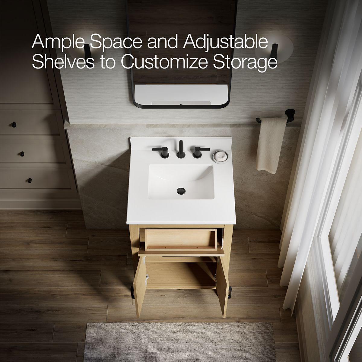 The Kresla vanity collection brings a quiet sophistication into your bathroom space with its with clean, architectural lines and range of finishes, and with its roomy interior you'll find ample storage space to keep your bathroom organized and clutter-free. The Kresla 24" vanity set includes cabinet, quartz countertop with matching backsplash, sink, and hardware. With KOHLER, it’s easy to find the design solution that’s right for you.