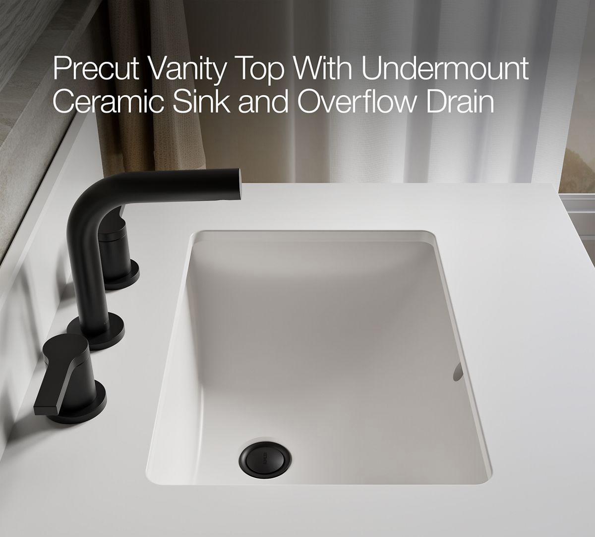 - Vanity top has 8" (203 mm) widespread faucet holes; requires deck-mount faucet (sold separately)