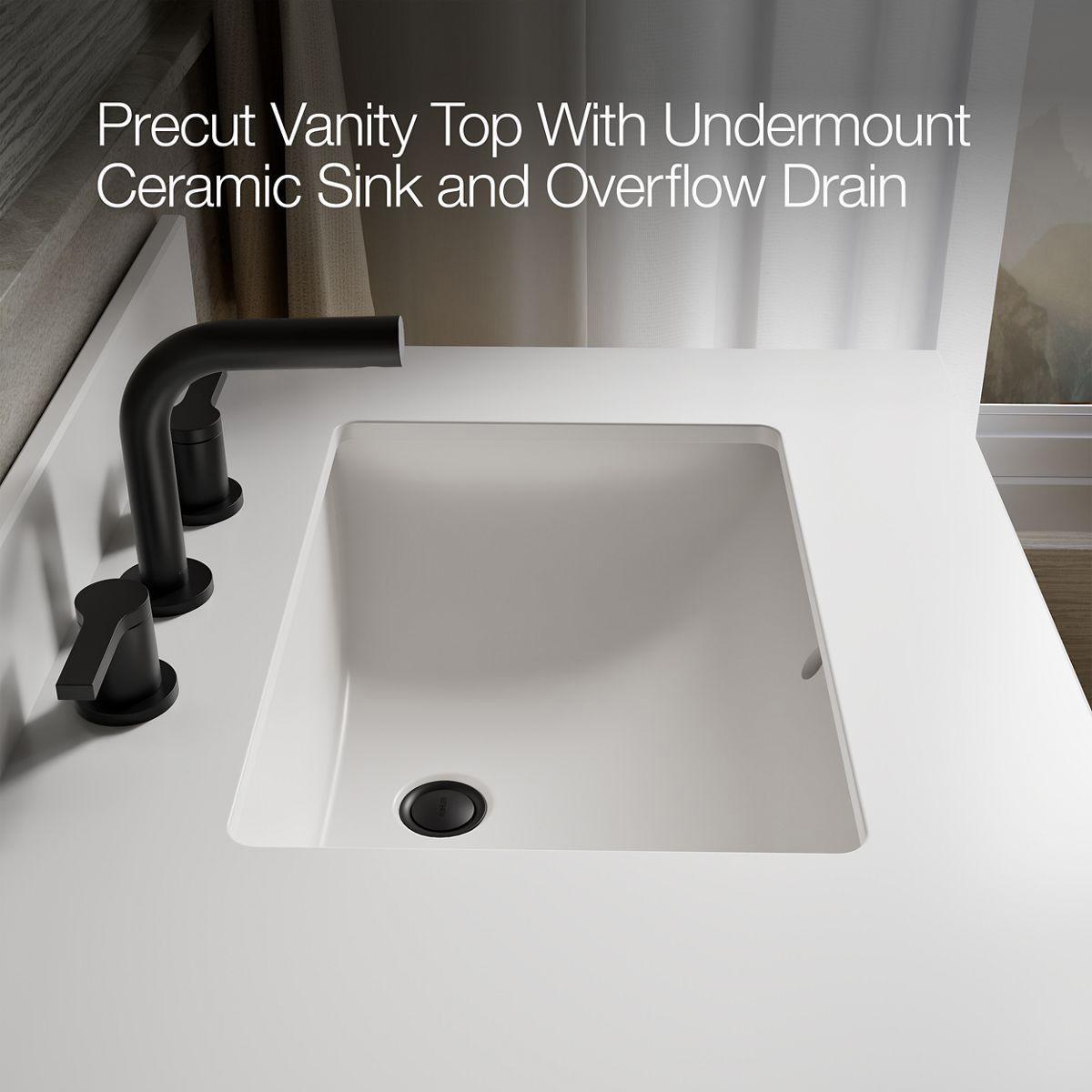 - Vanity top has 8" (203 mm) widespread faucet holes; requires deck-mount faucets (sold separately)