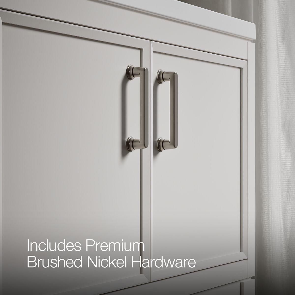 - Brushed Nickel hardware included on the White and Slate Grey vanities