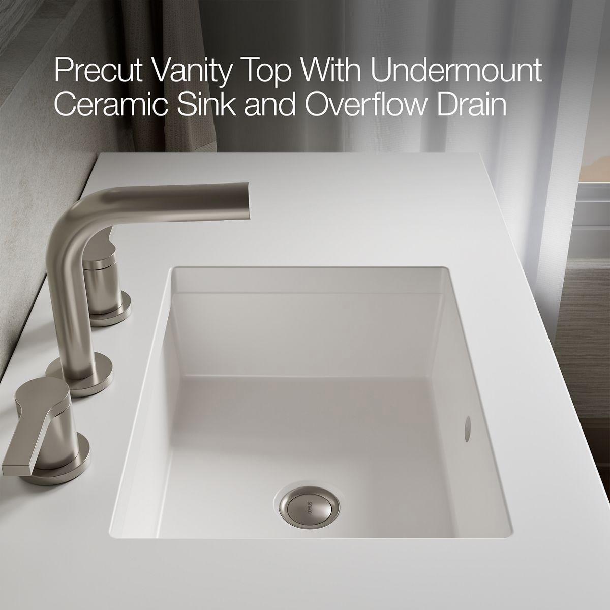 - Coordinates with K-33584 upgraded hardware finishes, K-25816 quartz backsplash, and K-25819 quartz side splash (sold separately).