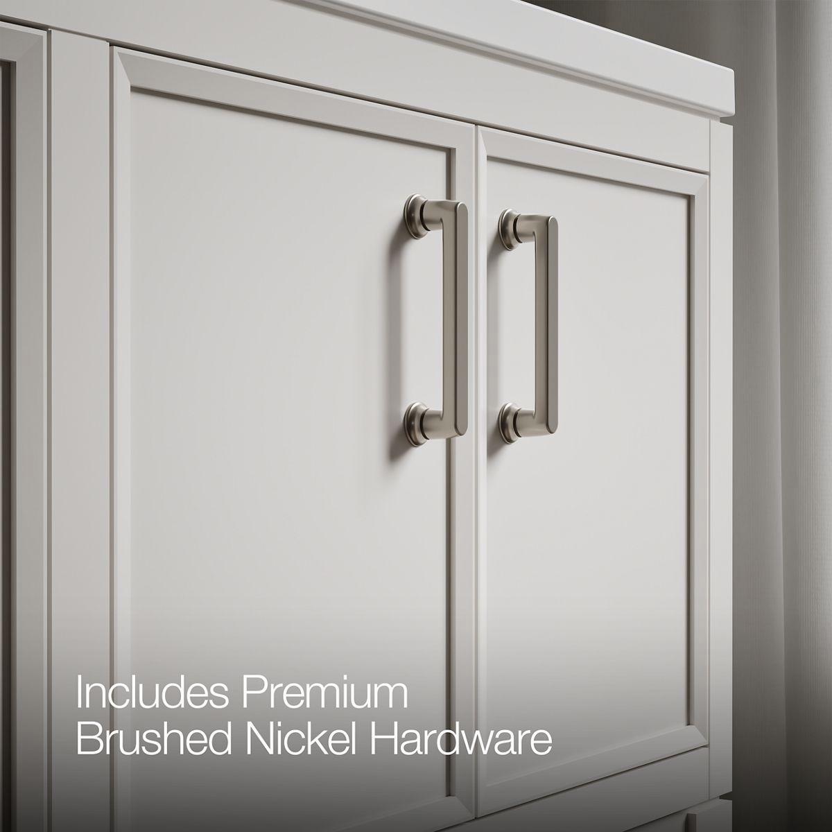 - Brushed Nickel hardware included on the White and Slate Grey vanities