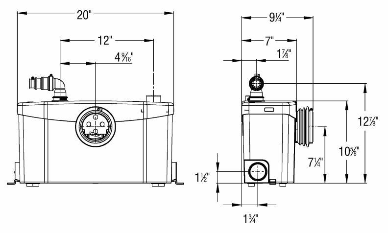 The Saniaccess 3 is a system that is used to install a complete bathroom up to 15 feet below the sewer line, or even up to 150 feet away from a soil stack, with gravity fall. The Saniaccess 3 can handle the effluent from a toilet, sink, bathtub, and/or shower. The Saniaccess 3 incorporates an actual shredder blade system and is equipped with two service panels atop the unit which allows fast and easy access to the internal components, should sanitary items be accidentally flushed.