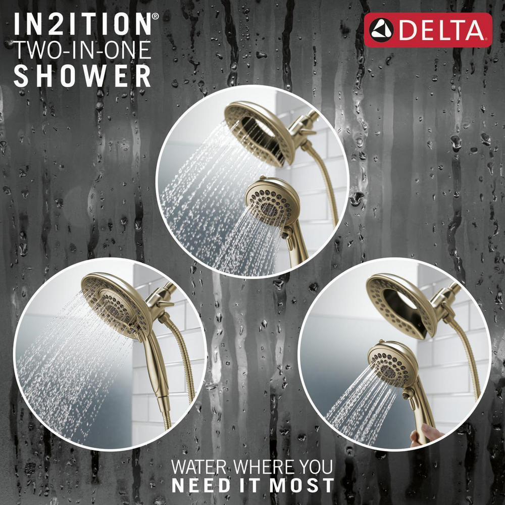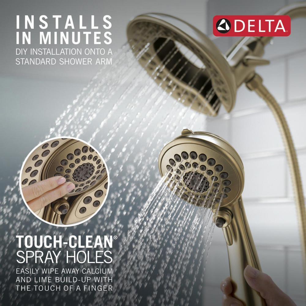 The Delta In2ition Two-in-One Shower features a detachable hand shower which can be used separately from or simultaneously with the shower head. This integrated dual-functionality gives you maximum flexibility without sacrificing warmth, as you can choose to have water streaming from the shower head only, the hand shower only or both the shower head and hand shower at once. While other products may gather unsightly mineral build-up over time, Delta soft rubber Touch-Clean spray holes allow any mineral residue to simply be wiped away for an instantly refreshed look — with no need for soaking or the aid of chemical cleaners. Delta WaterSense labeled faucets, showers and toilets use at least 20% less water than the industry standard — helping you save water without compromising performance. You can install with confidence, knowing that Delta showers are backed by our Lifetime Limited Warranty.