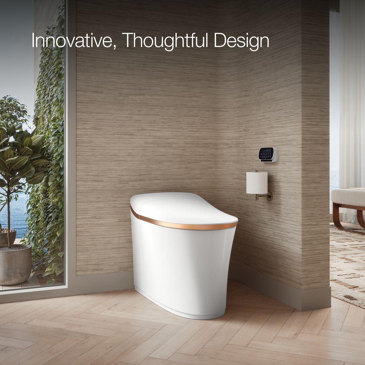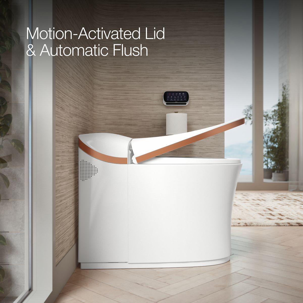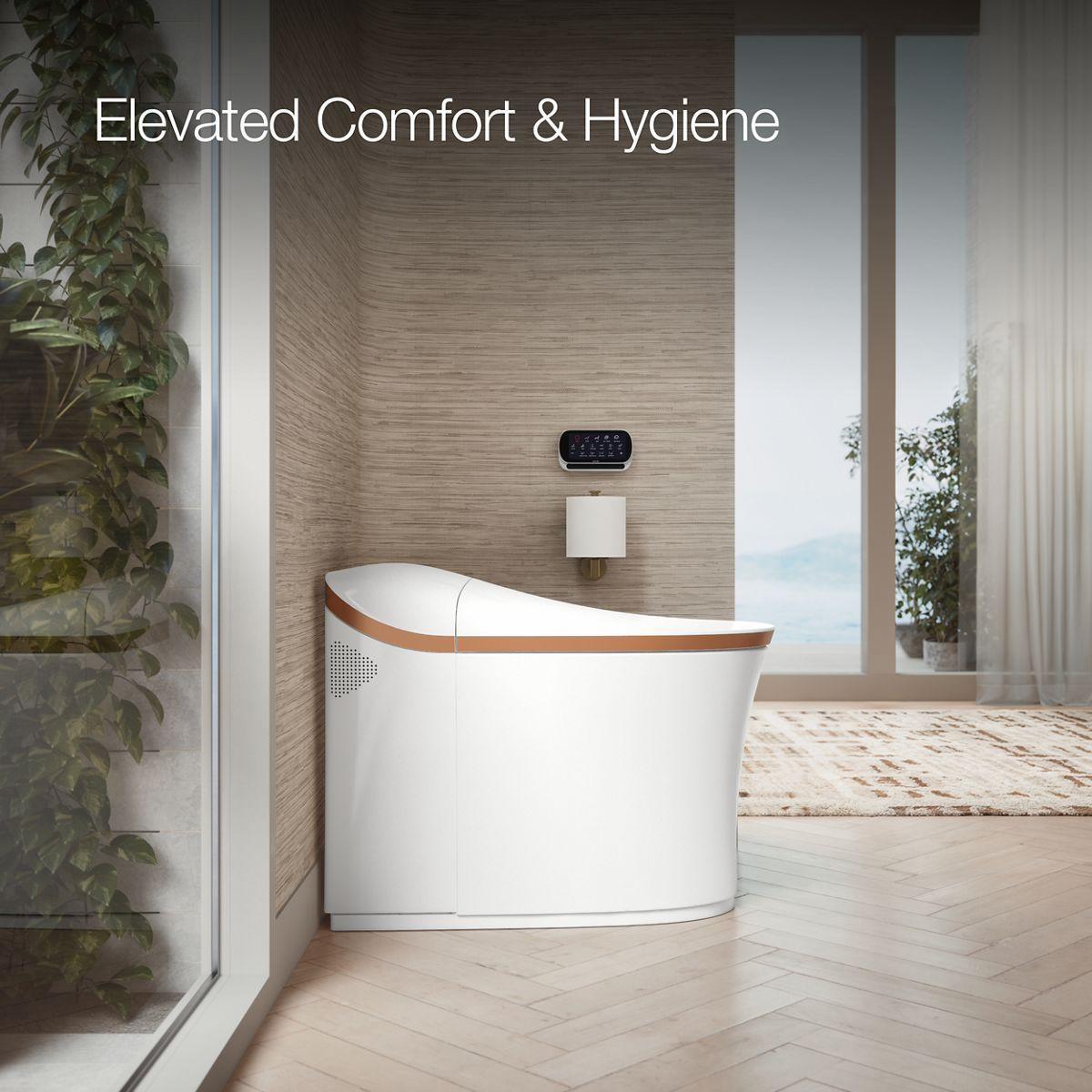 Eir Comfort Height Dual Flush Elongated 1-Piece Smart Toilet - White with Sunrise Gold Trim 77795-0SG Kohler