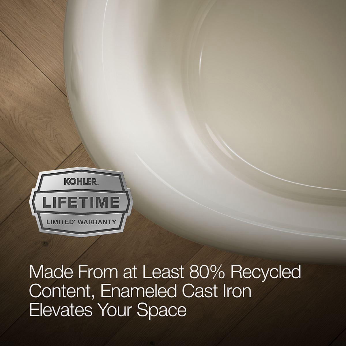 Inspired by the charm of turn-of-the-century homes, an Artifacts freestanding bath is like a vintage treasure rediscovered—enhanced by the comforts of modern design. The gentle curve in the rim shape offers added neck support while keeping the center at a lower height for easy access in and out of the bath. The smooth enameled interior is complemented by a Biscuit painted finish on the exterior. Customize your Artifacts bath with a pedestal base or ball-and-claw feet. Safeguard slip-resistant surface enhances safety.