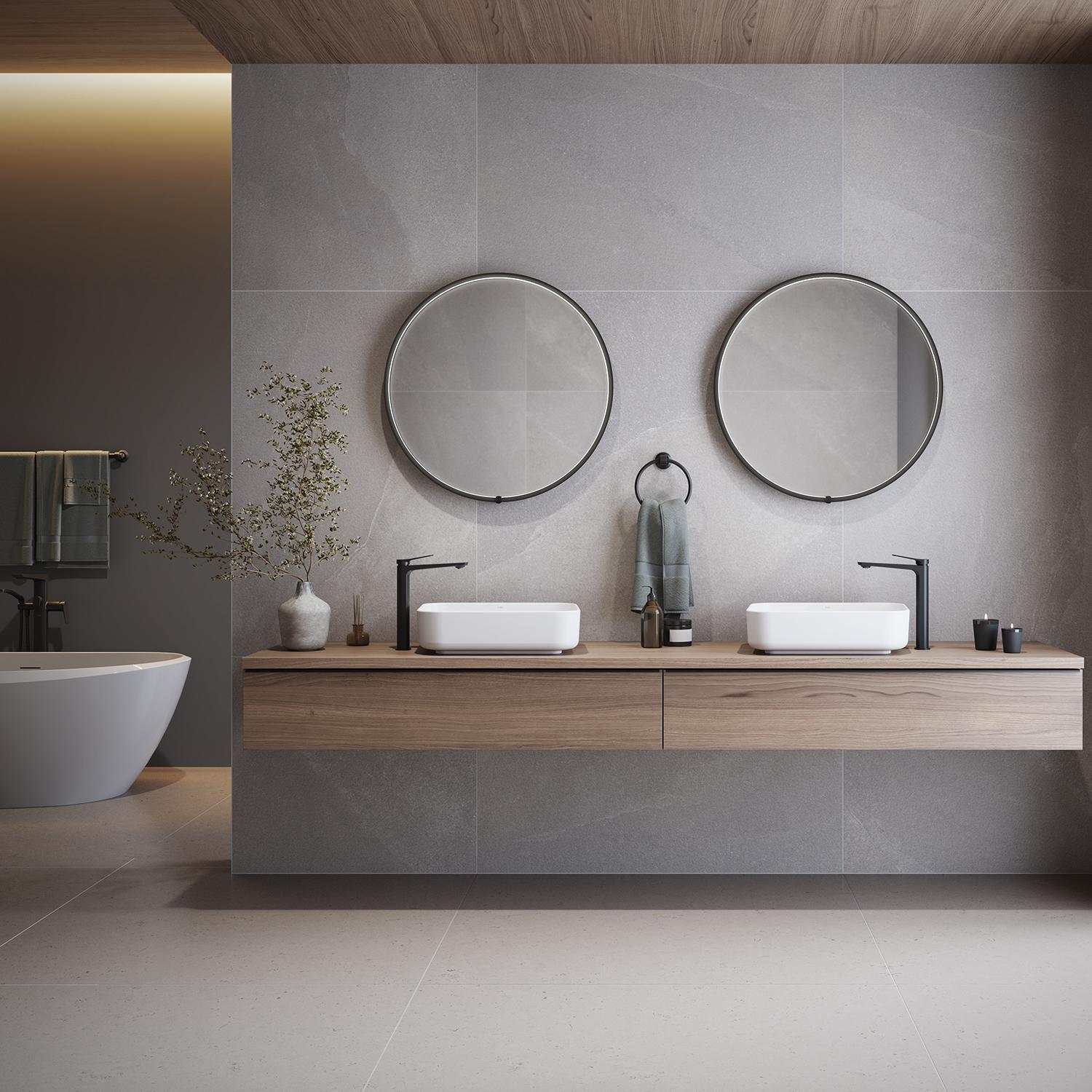 Nox 30" x 30" Round LED Lighted Mirror - Black MR2200-570-001 Kalia