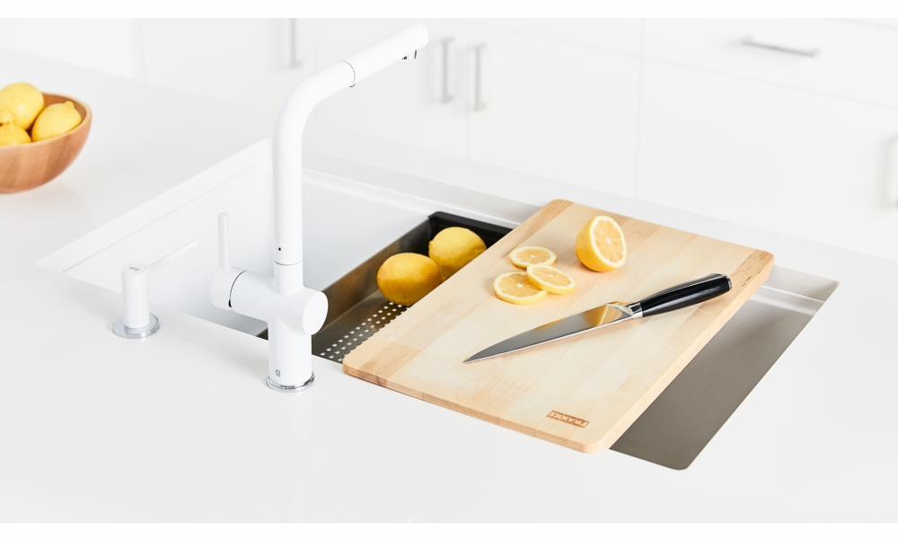 Maris 33-1/16" Fragranite 1.5 Bowl Undermount Kitchen Sink with Accessories - Polar white MAG1601812LD-PWT-WKC Franke