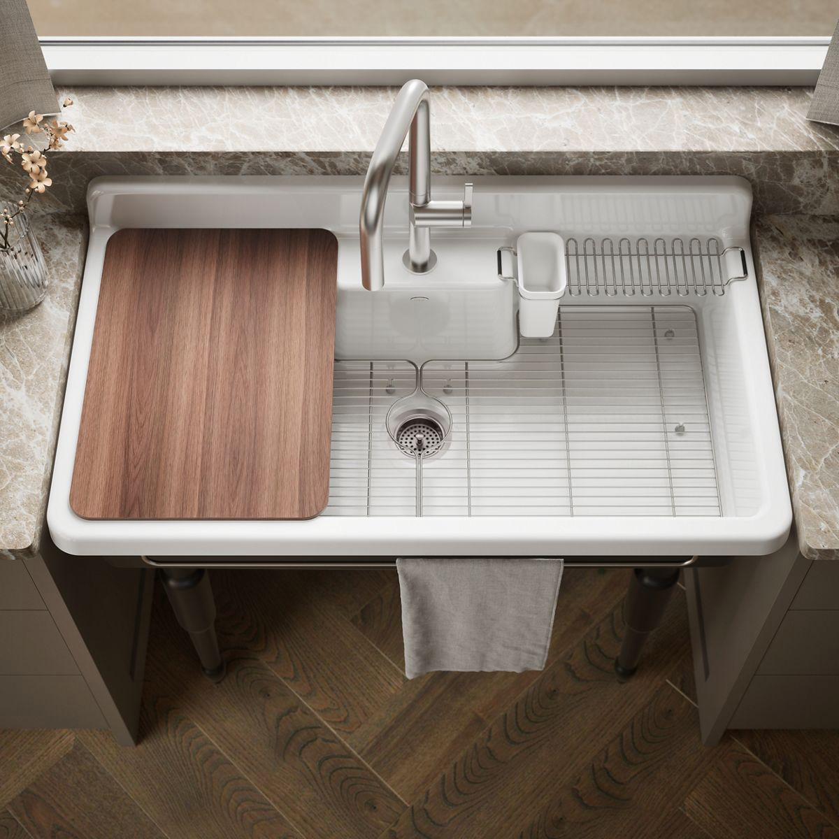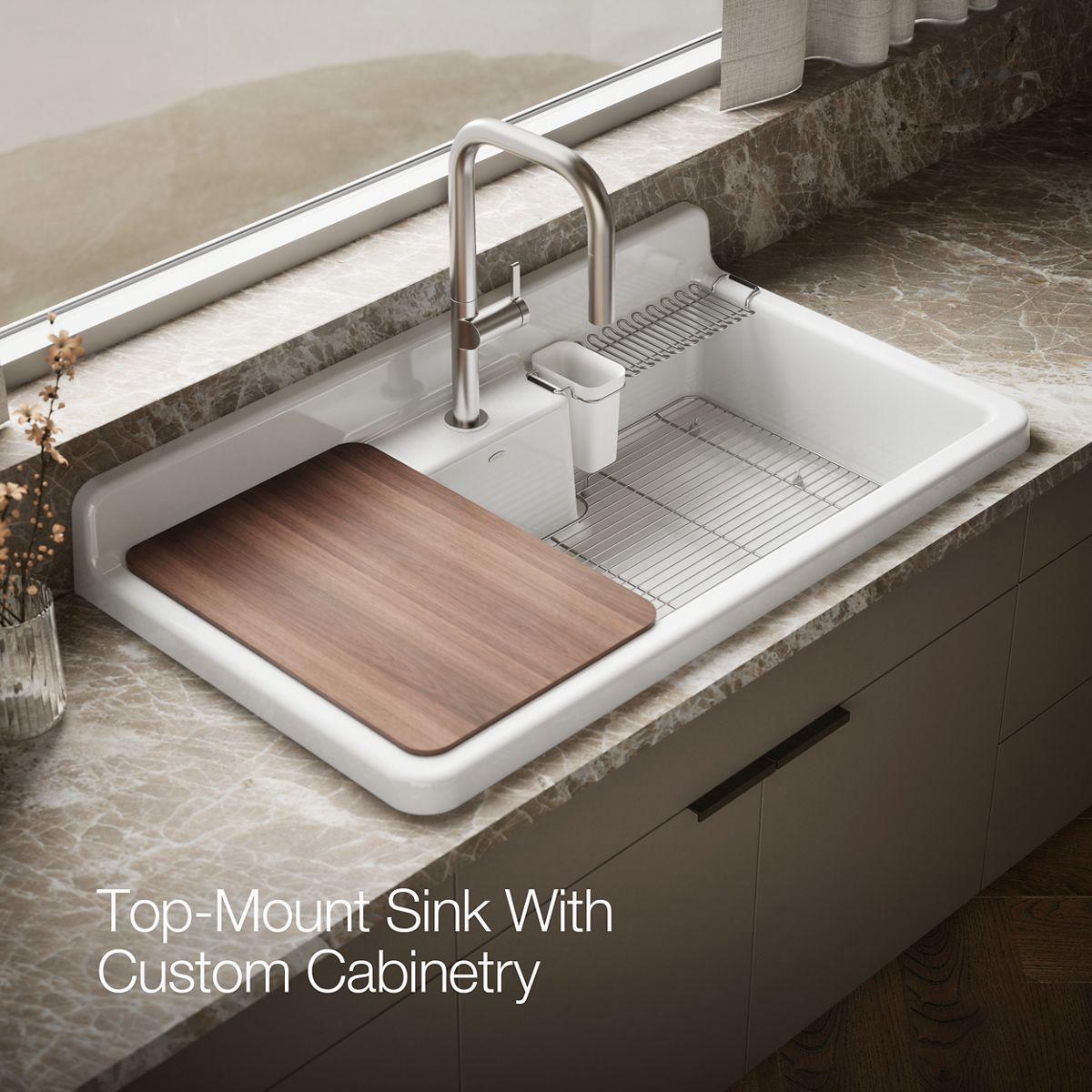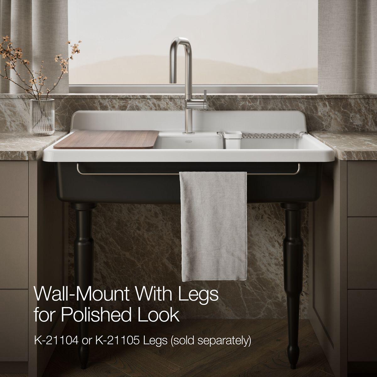 Farmstead 45 1-Hole Top or Wall Mount Workstation Farmhouse Kitchen Sink - White/Black 21103-1HP5-0 Kohler