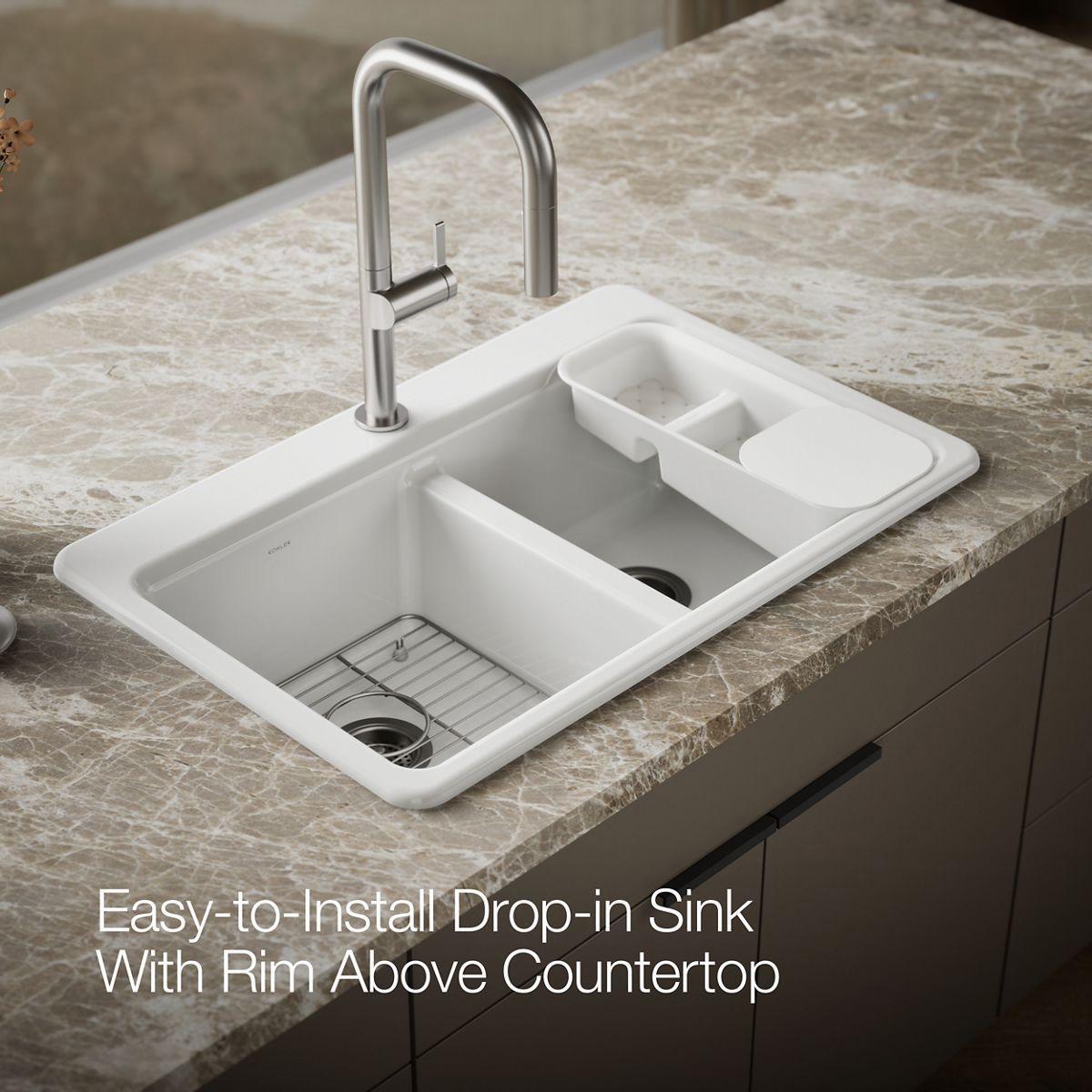 • Includes K-6239 colander with integral cutting board and K-9238 bottom sink rack.