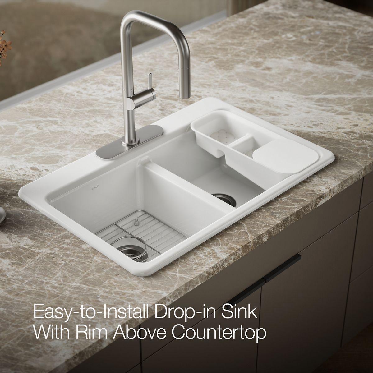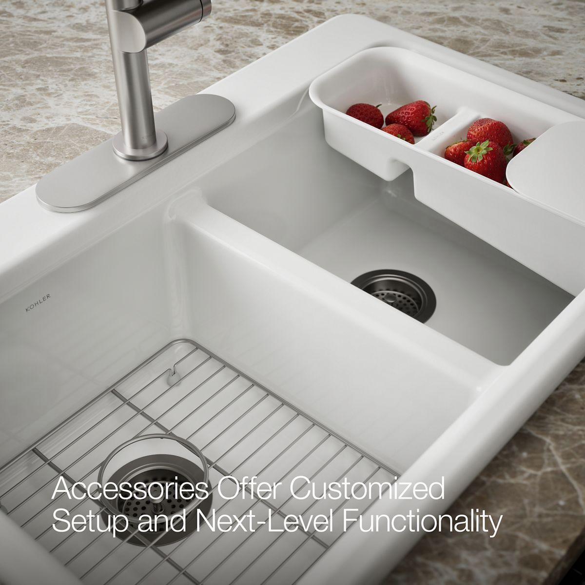- Includes K-6239 colander with integral cutting board and K-9238 bottom sink rack.