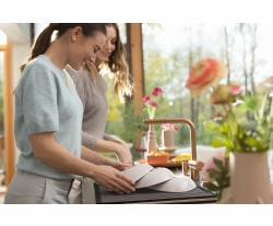 Roller Mat for Mythos Masterpiece Sinks, 18.4-in x 17.9-in, Anthracite. This sink Roller Mat is a truly innovative and practical accessory designed for any kitchen task, including drying dishes and stemware. Designed to work over the top of the sink for prepping, rinsing or drying fruits and vegetables, and can also be used a trivet to protect kitchen countertops from hot pots and pans.