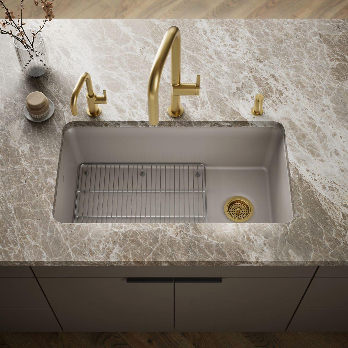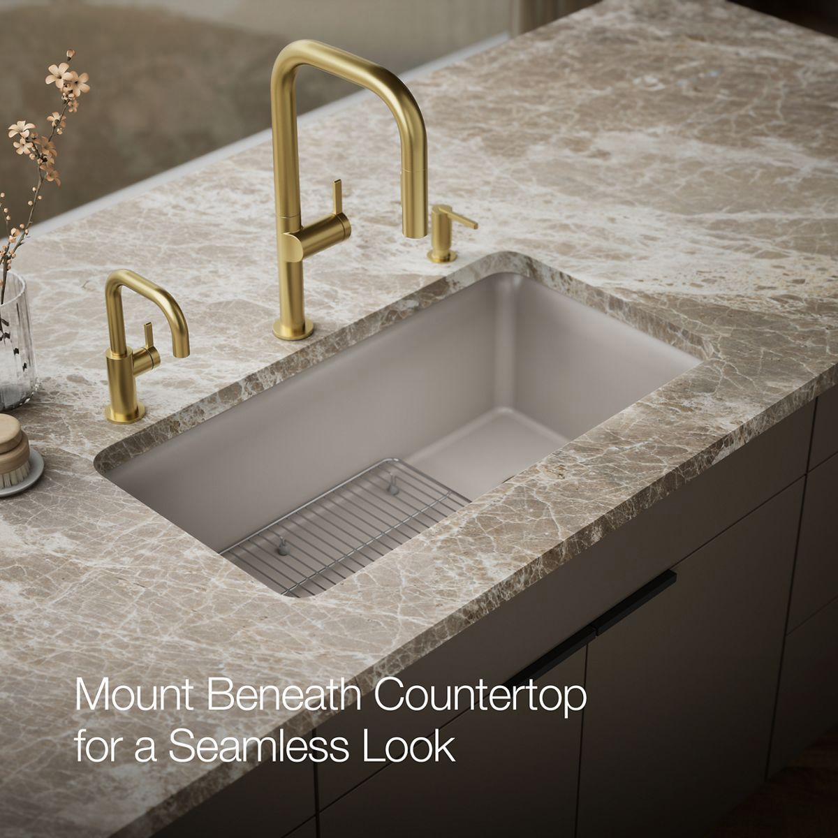 Cairn 33-1/2" 1 Bowl Undermount Neoroc Kitchen Sink with Rack - Matte Taupe 8206-CM3 Kohler