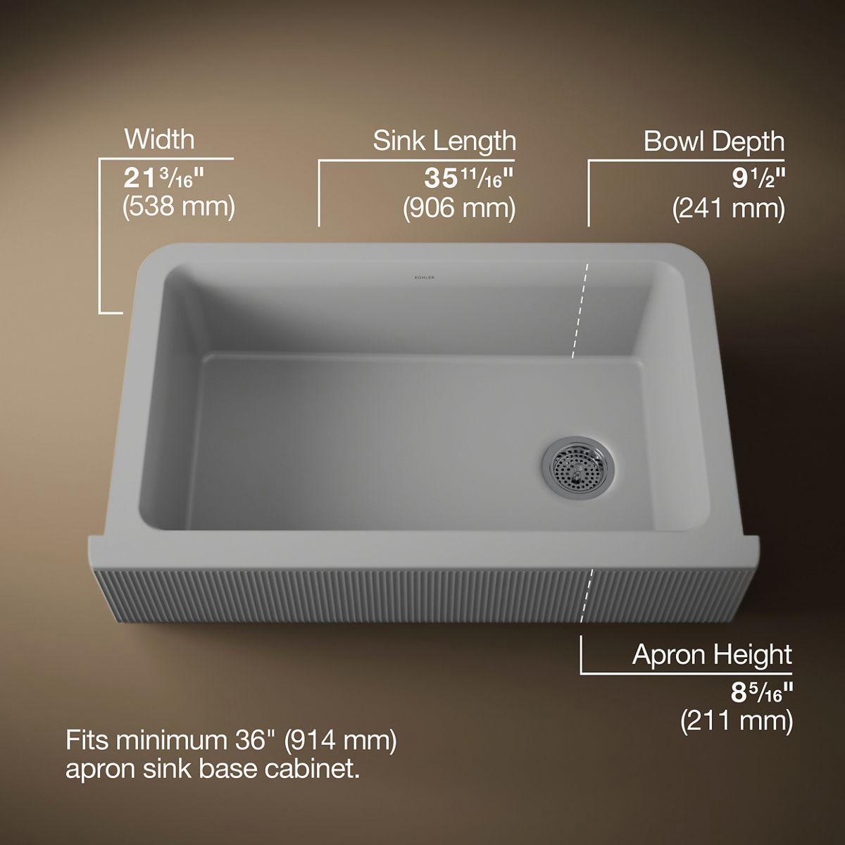 - Fits minimum 36" (914 mm) apron sink base cabinet.
