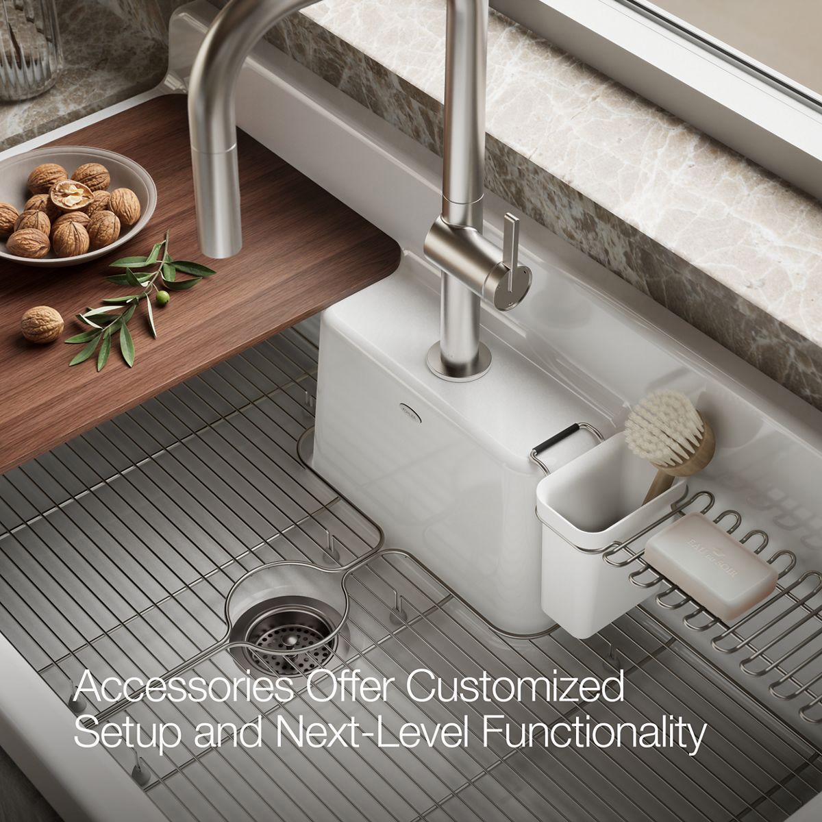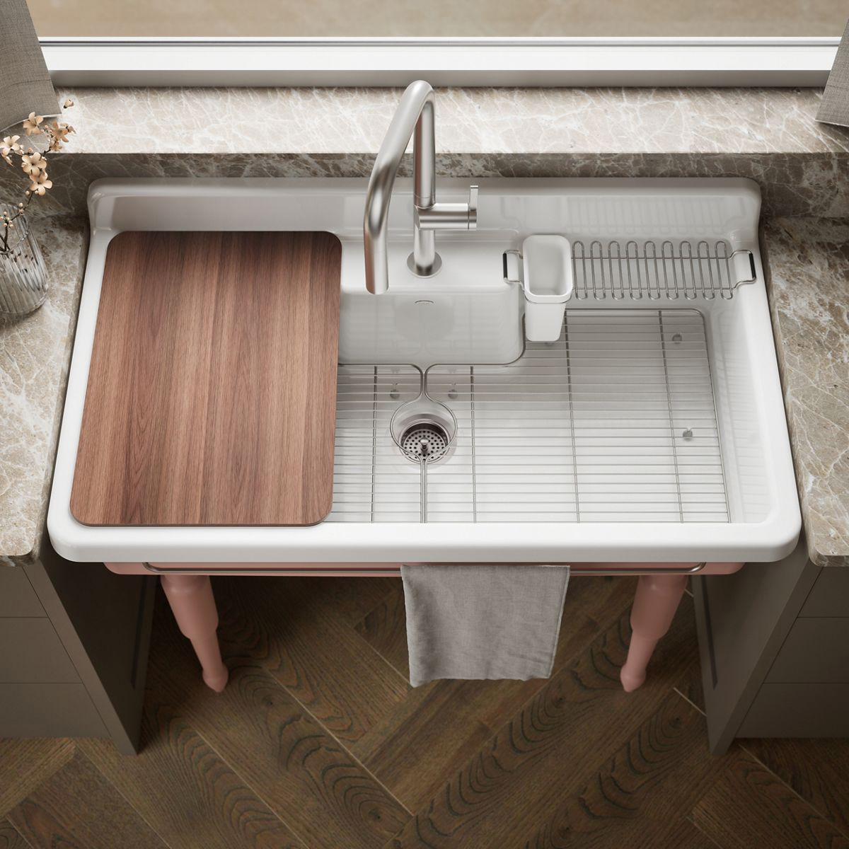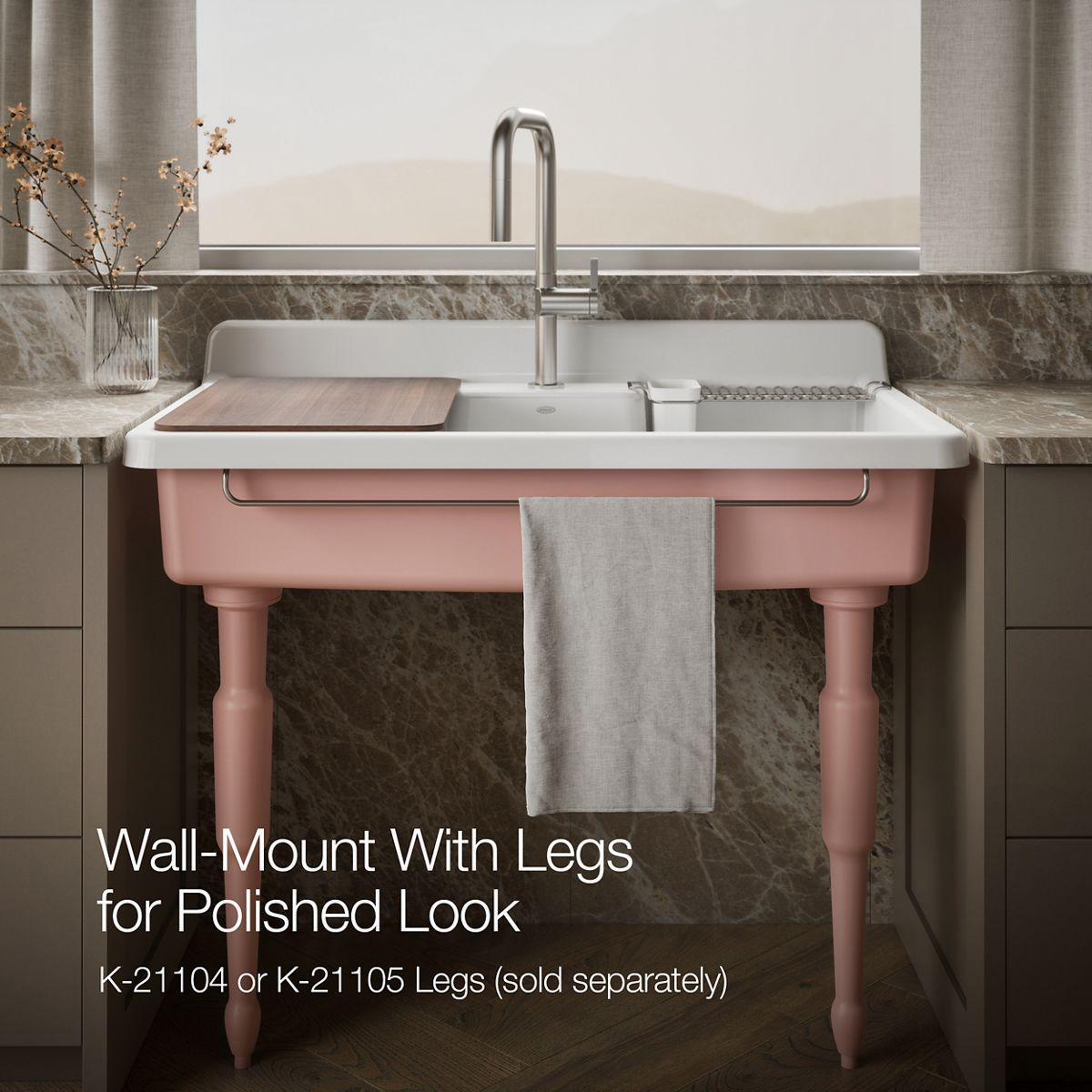 Farmstead 45 1-Hole Top or Wall Mount Workstation Farmhouse Kitchen Sink - White/Peachblow 21103-1HPPB-0 Kohler
