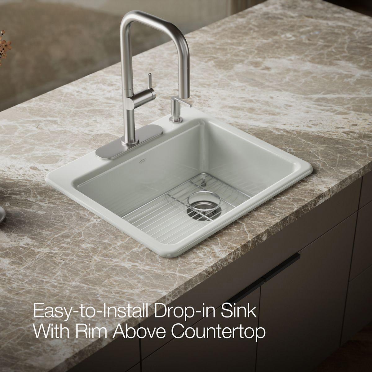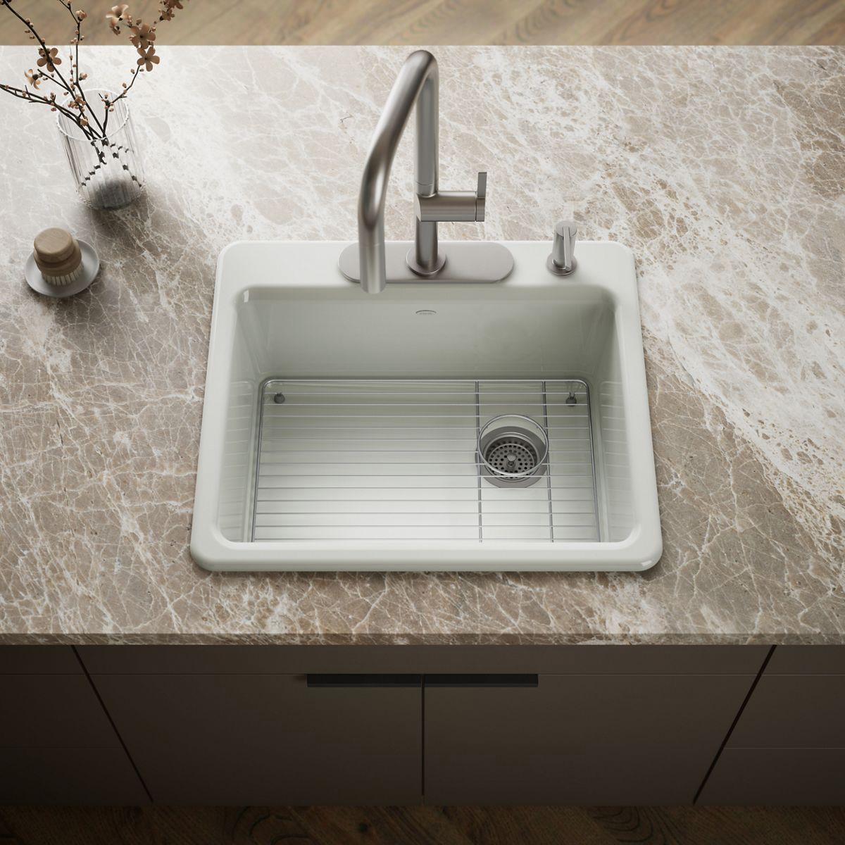 Riverby 25" 4-Hole 1 Bowl Top Mount Kitchen Sink with Rack - Sea Salt 5872-4A1-FF Kohler