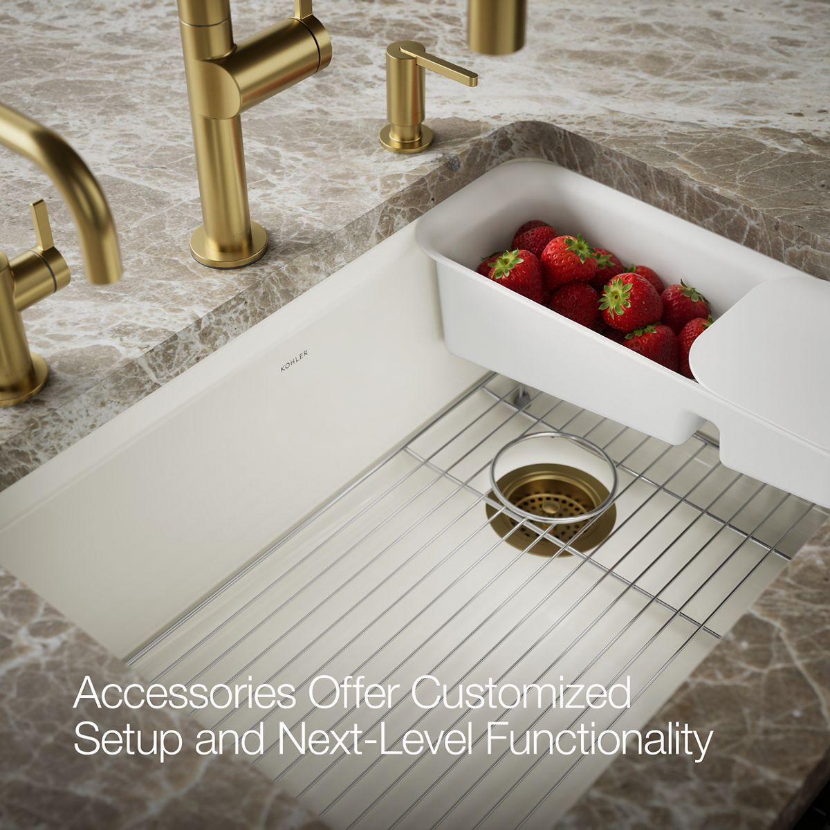 - Includes K-6239 colander with integral cutting board and K-9137 bottom sink rack.