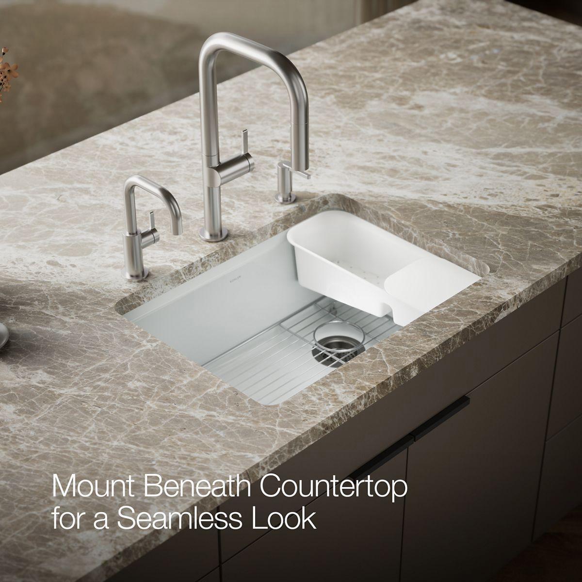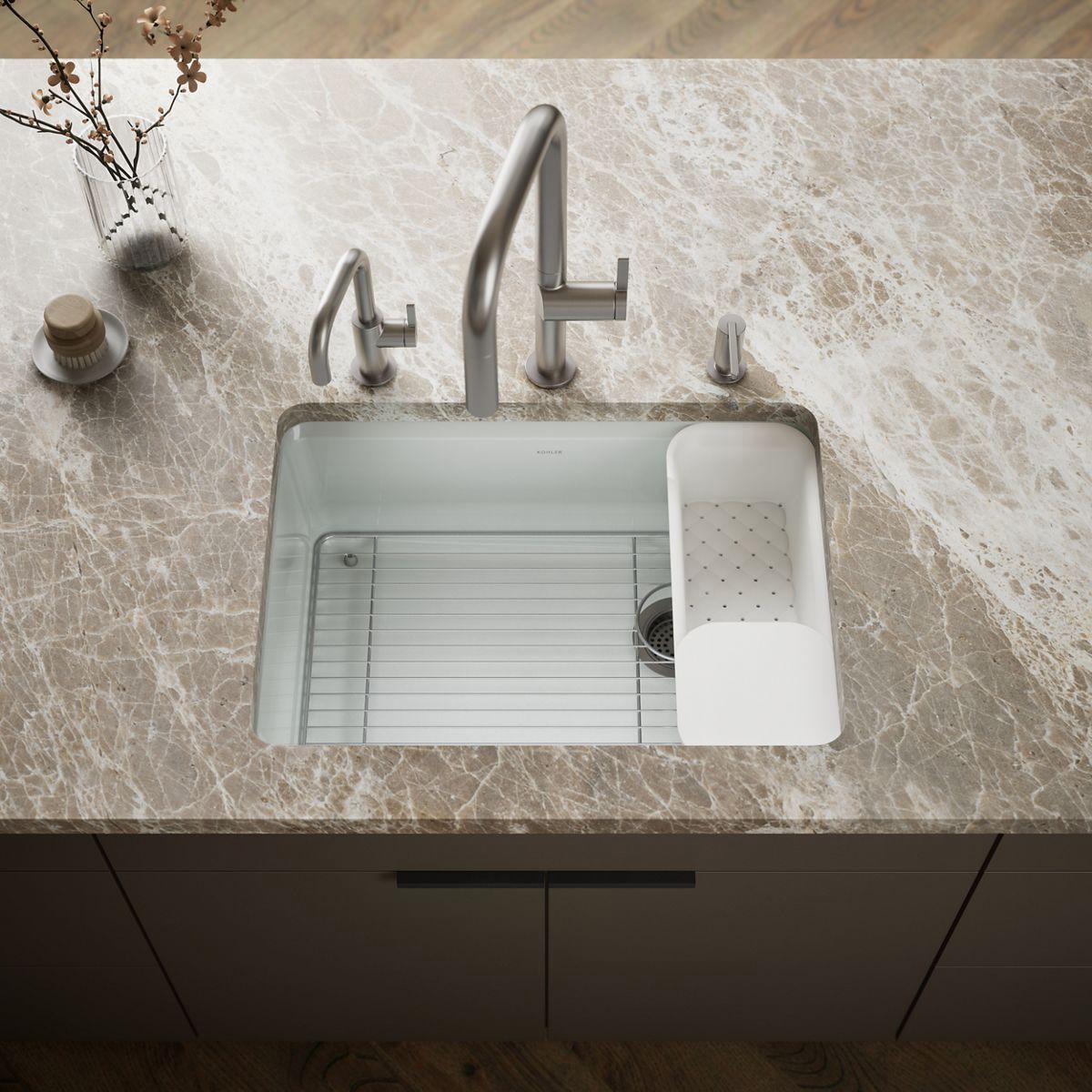 - Includes K-6239 colander with integral cutting board and K-9137 bottom sink rack.