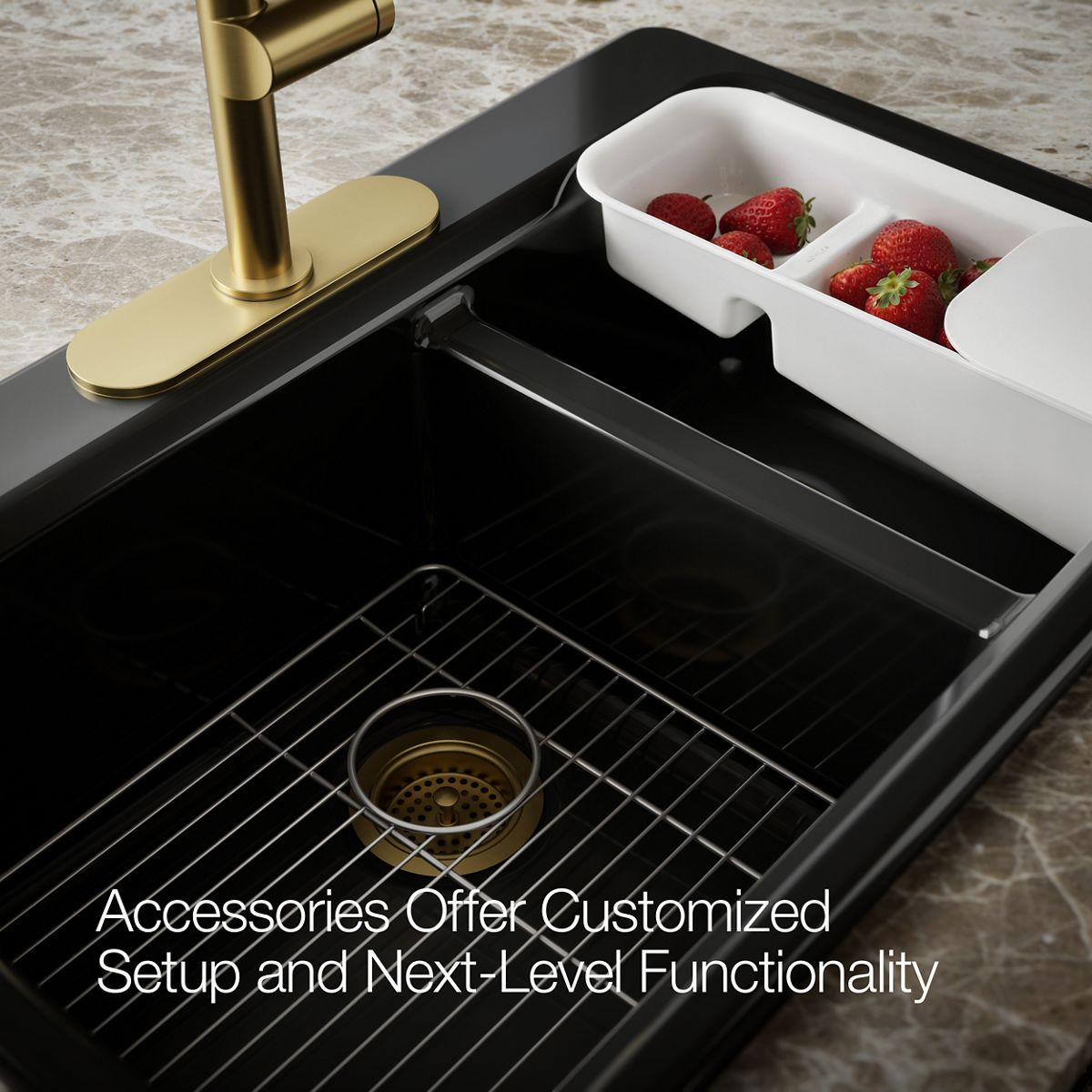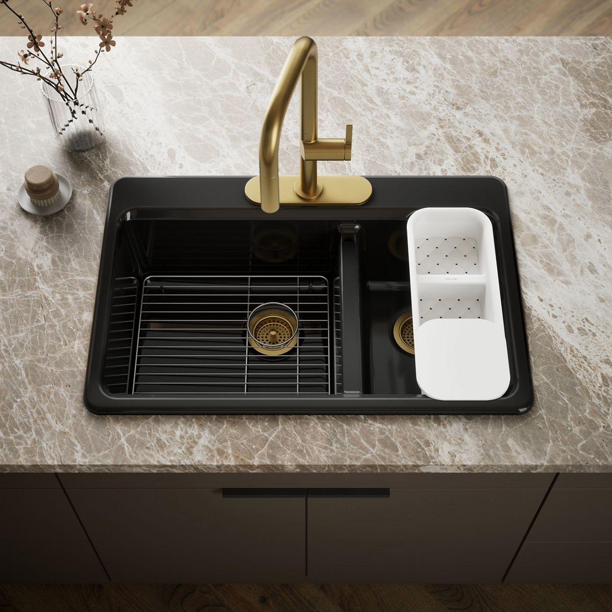 - Includes K-6239 colander with integral cutting board and K-9234 left-hand bottom sink rack.