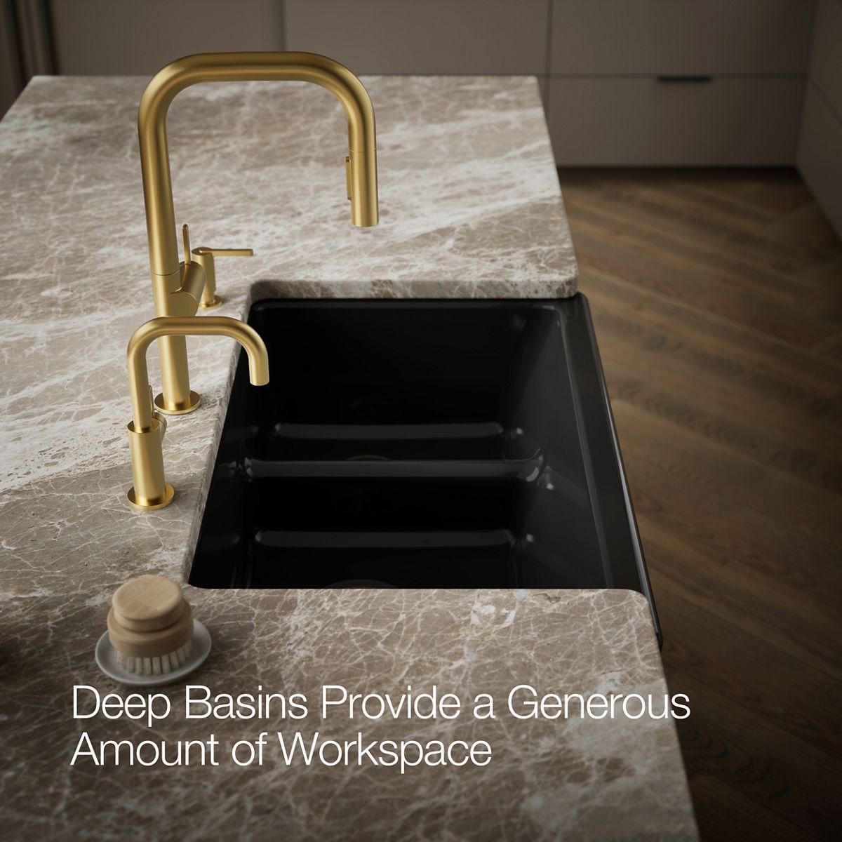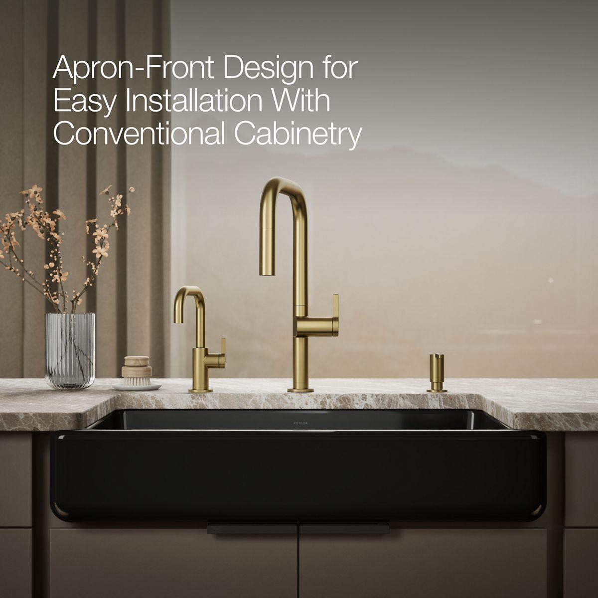 Whitehaven Smart Divide 35-1/2" 1.75 Bowl Undermount Farmhouse Kitchen Sink with Short Apron - Black Black 6426-7 Kohler