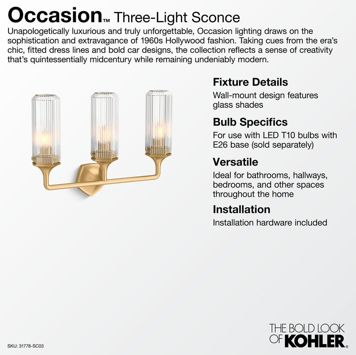 Occasion 3-Light Sconce - Brushed Moderne Brass 31778-SC03-2GL Kohler