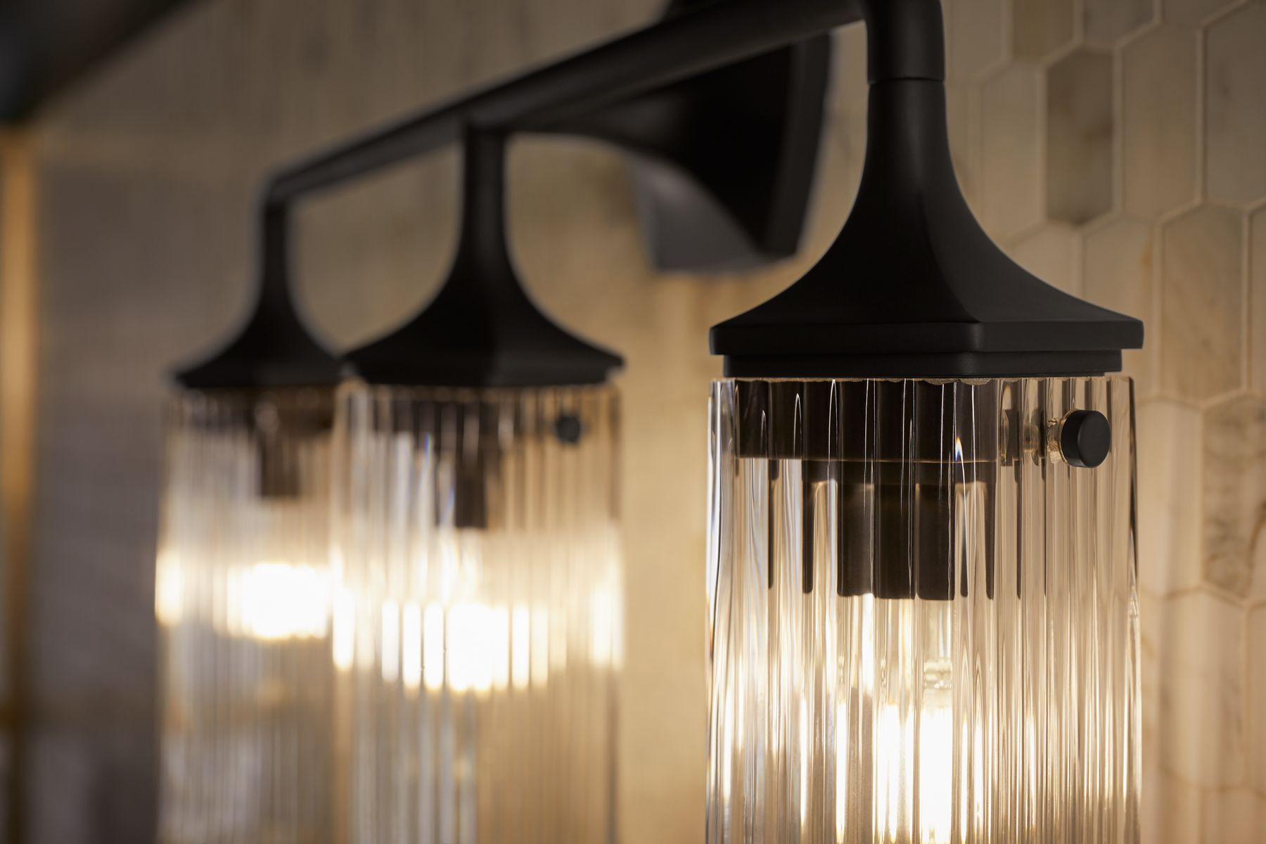 The Occasion lighting collection offers a modern rendition of 1960s Hollywood glamour across sconce, flush-mount, and pendant designs. Faceted metal bases and fluted cylindrical glass shades combine in centerpieces as elegant as they are functional. Like its Golden Age inspiration, the lighting collection evokes a vintage starlet charisma. Alluring and stylish, these statement pieces were created to complement the KOHLER® Occasion faucet collection.