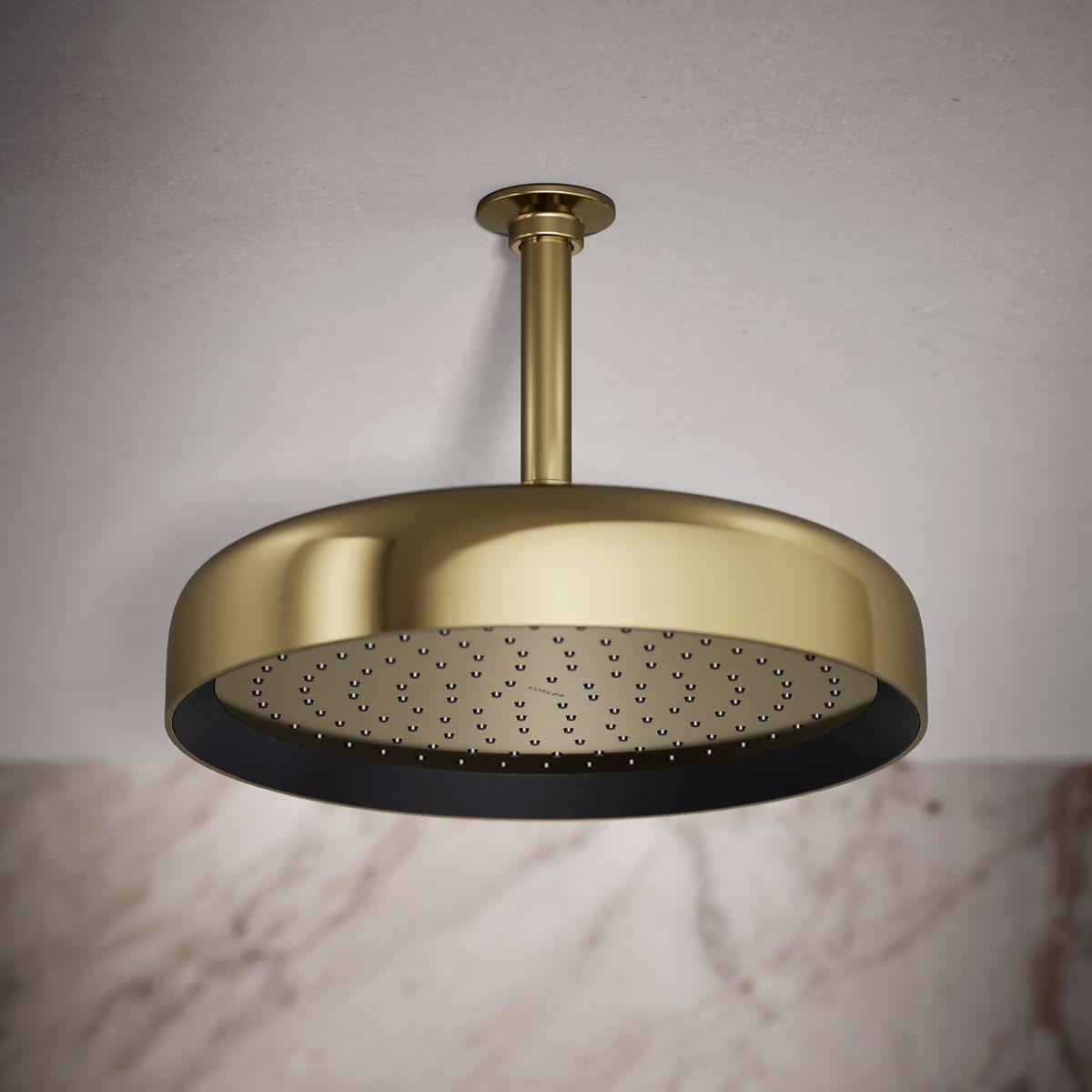 Enjoy a shower that simulates a soaking summer storm, all without wasteful overspray. This contemporary 12 round rainhead features Full Coverage with Katalyst air-induction technology, which efficiently mixes air and water to produce large water droplets and deliver a powerful, consistent, full overhead spray experience. The single-function rainhead's clean good looks and durable finish coordinate with many KOHLER faucets and accessories.