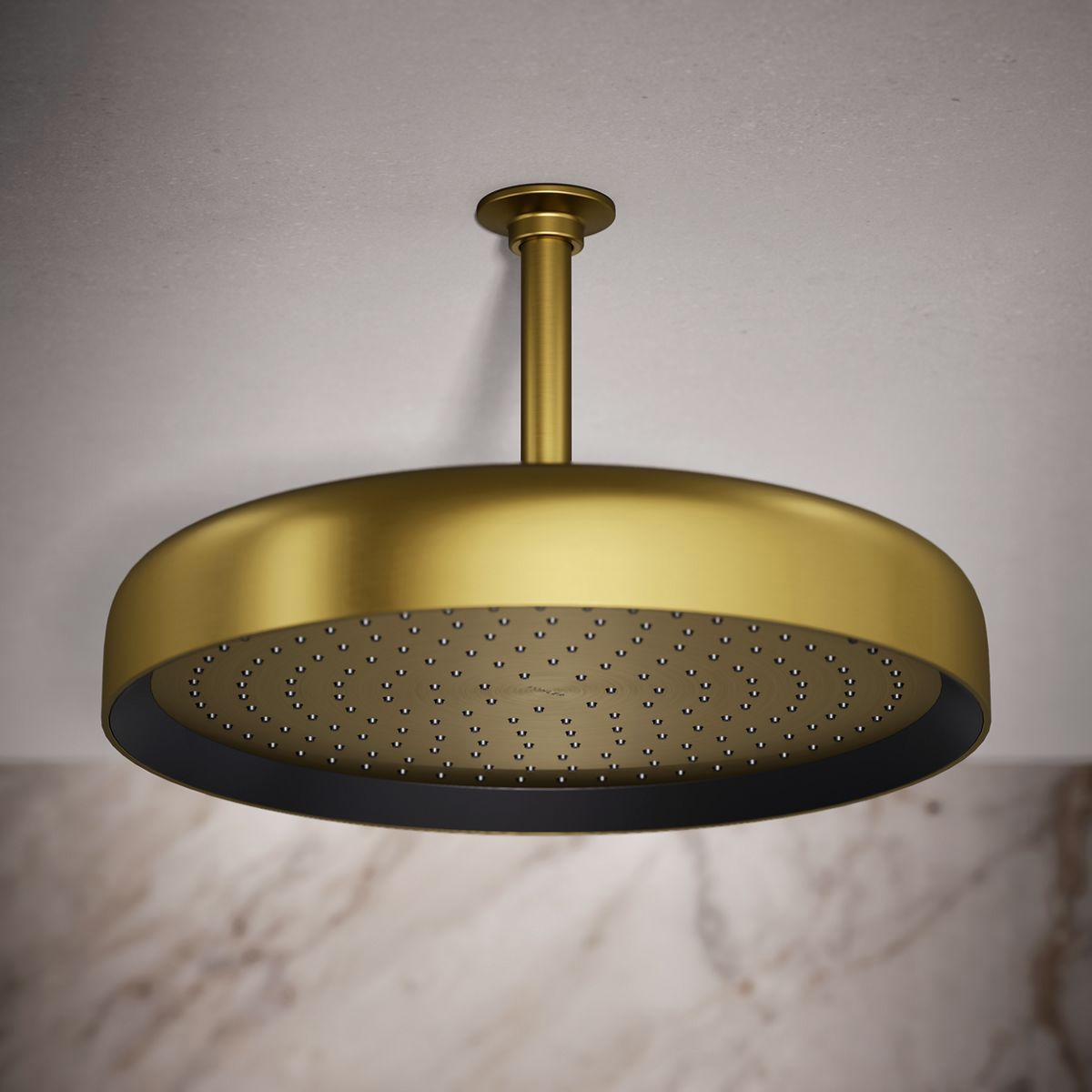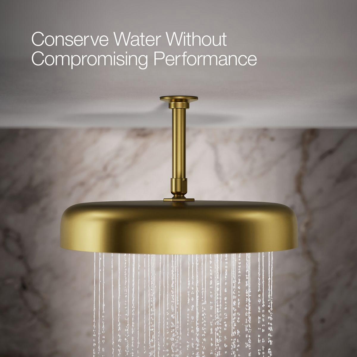 Enjoy a shower that simulates a soaking summer storm, all without wasteful overspray. This contemporary 14 round rainhead features Full Coverage with Katalyst air-induction technology, which efficiently mixes air and water to produce large water droplets and deliver a powerful, consistent, full overhead spray experience. The single-function rainhead's clean good looks and durable finish coordinate with many KOHLER faucets and accessories.